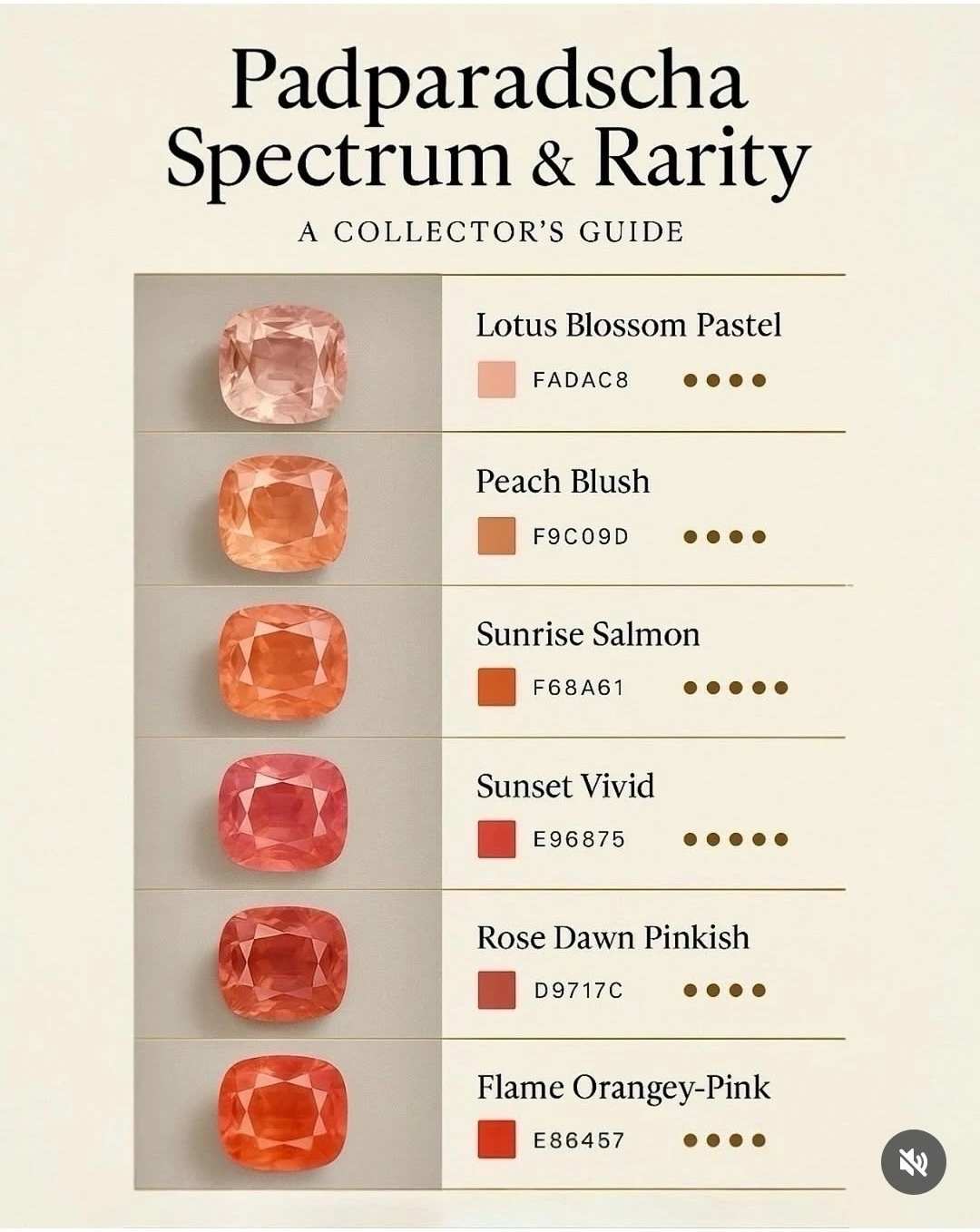 파파라차는 선라이즈부터 선셋까지의 색상표가 핀터레스트에 돌아다닌다. 안에 빨간 모닥불이 타오르는 스페샤르타이트 가넷은 빨간색도 있고 오렌지색도 있다. 별로 아름답지도 않은데 거창한 상업명으로 값이 높은 보석들이 있다.