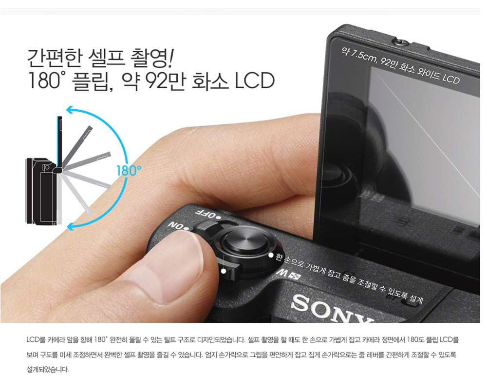 특히 'A5000'의 가장 큰 특징이라면 180도까지 꺽이는 이 플립 LCD입니다.