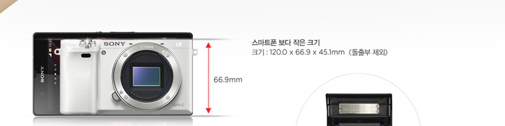 120.0mmx66.9mm의 크기는 보급형 스냅카메라의 크기이고, 웬만한 스마트폰에 비교하더라도 작은 크기입니다.