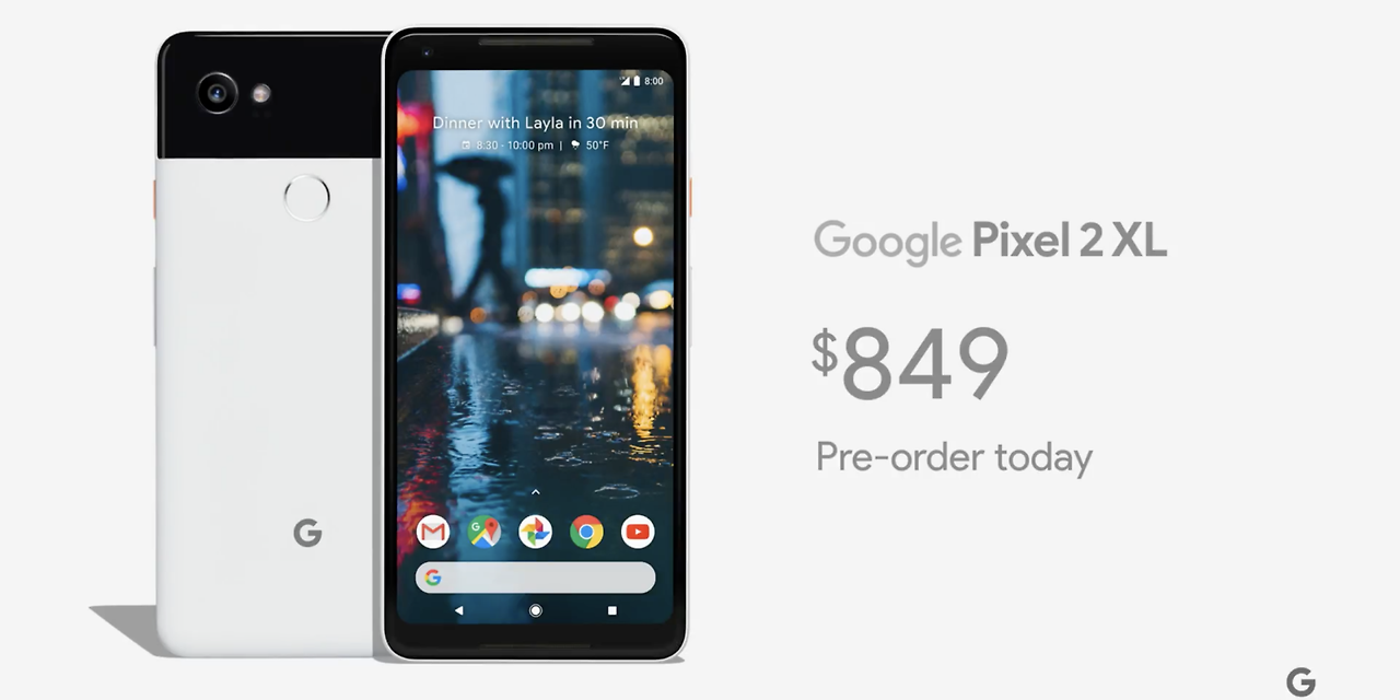 가격은 '픽셀 2' 64G모델이 649달러, 128G모델은 749달러이고 '픽셀 2 XL' 64G모델은 849달러, 128G모델은 949달러입니다. 선택 가능한 색상은 '픽셀 2'는 '카인다 블루', '저스트 블랙', '클리얼리 화이트' 3가지 색상이며 '픽셀 2 XL'은 '저스트 블랙', '블랙앤화이트' 2가지 색상입니다. 사전 예약으로 구입하면 오는 17일부터 수령할 수 있고, 19일 이전에 구입하면 구글 홈 미니가 함께 제공됩니다. 참고로 구글 홈 미니는 아마존의 에코닷과 경쟁하는 AI 스마트 스피커로 49달러에 판매됩니다.