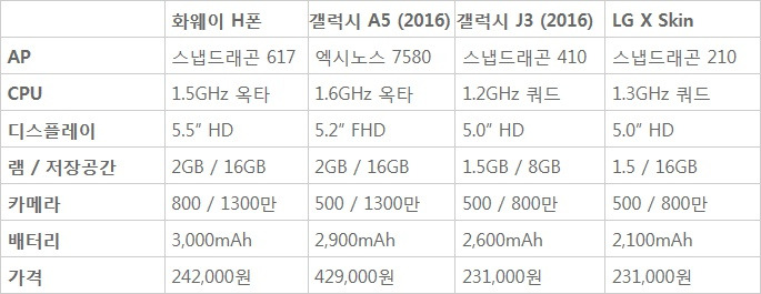 그만큼 '화웨이 H폰'의 가격이 저렴하다는 것이죠.