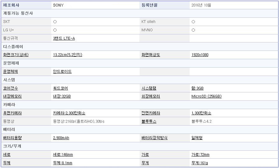 또한 자급제폰으로 출시되었고 VoLTE를 지원하고 있어 통신 3사는 물론이고 알뜰통신사에서도 모두 사용이 가능한 '엑스페리아 XZ'입니다.
