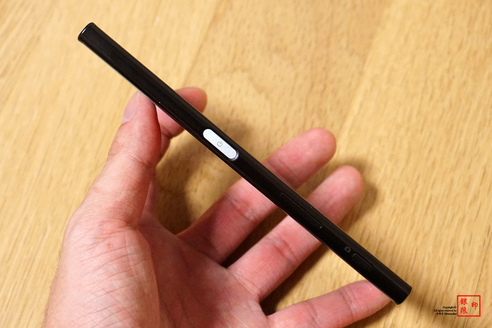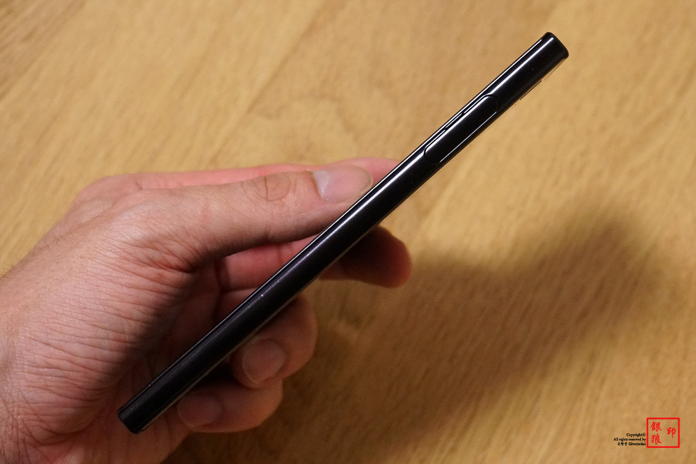'엑스페리아 XZ'의 측면입니다. 시각적으로 꽤 두꺼워 보이지만 실제 두께는 8.1mm입니다.