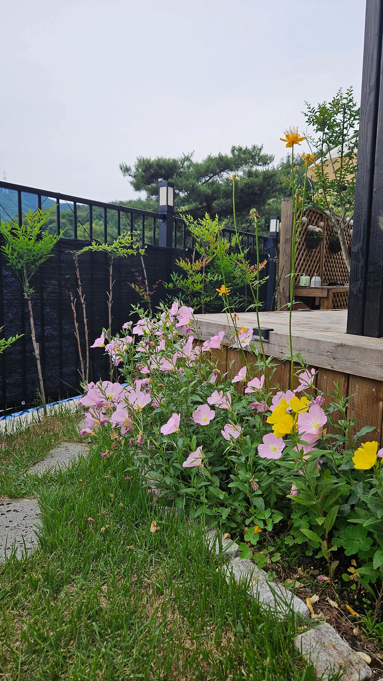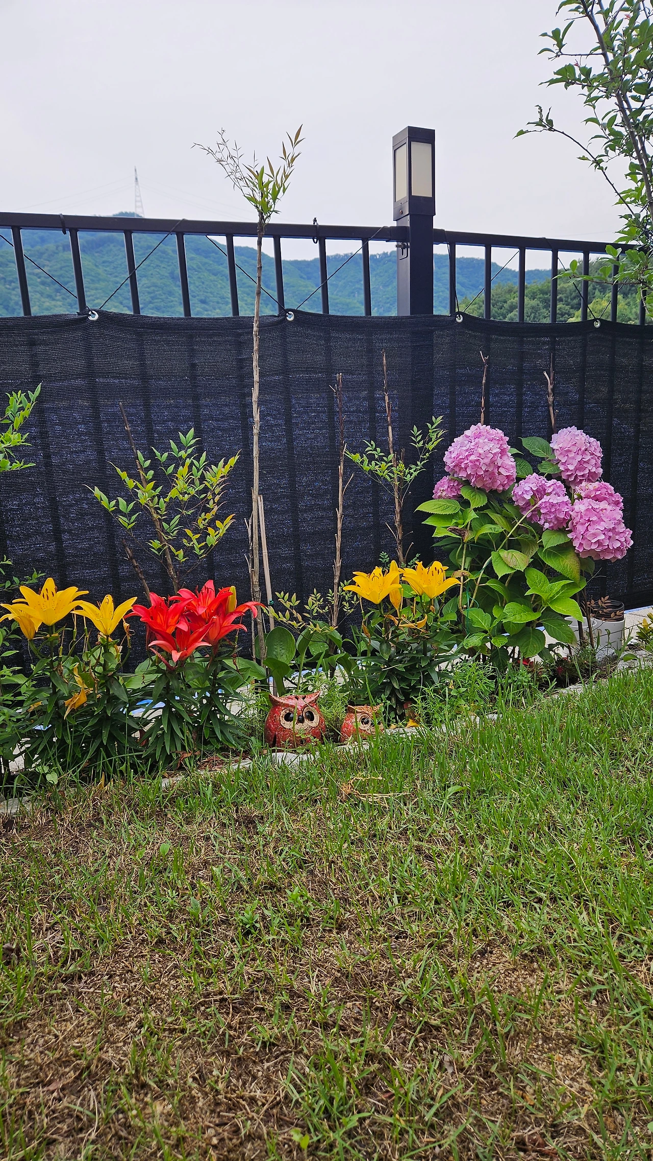 저녁식사 준비하기 전에 집구경을 했는데 정원에 심어놓은 꽃들에 시선이 오래 머물렀다. 특히 연보랏빛 수국은 참 탐스럽고 예뻤다.