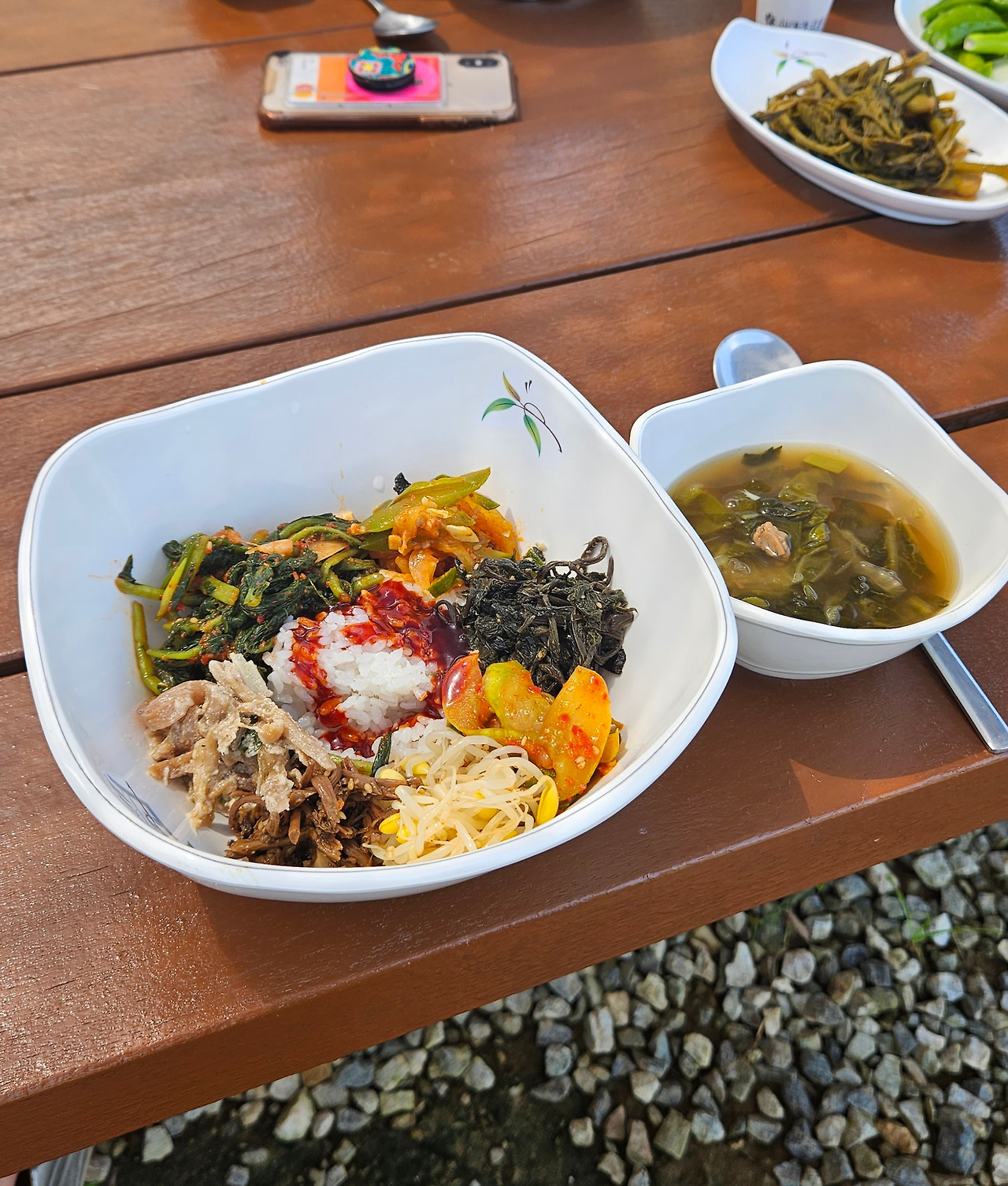 정성스럽게 만든 나물 반찬에 밥을 스윽슥 비벼 하늘을 바라보며 먹는데.. 꿀맛이 아닐 수가 없었다.