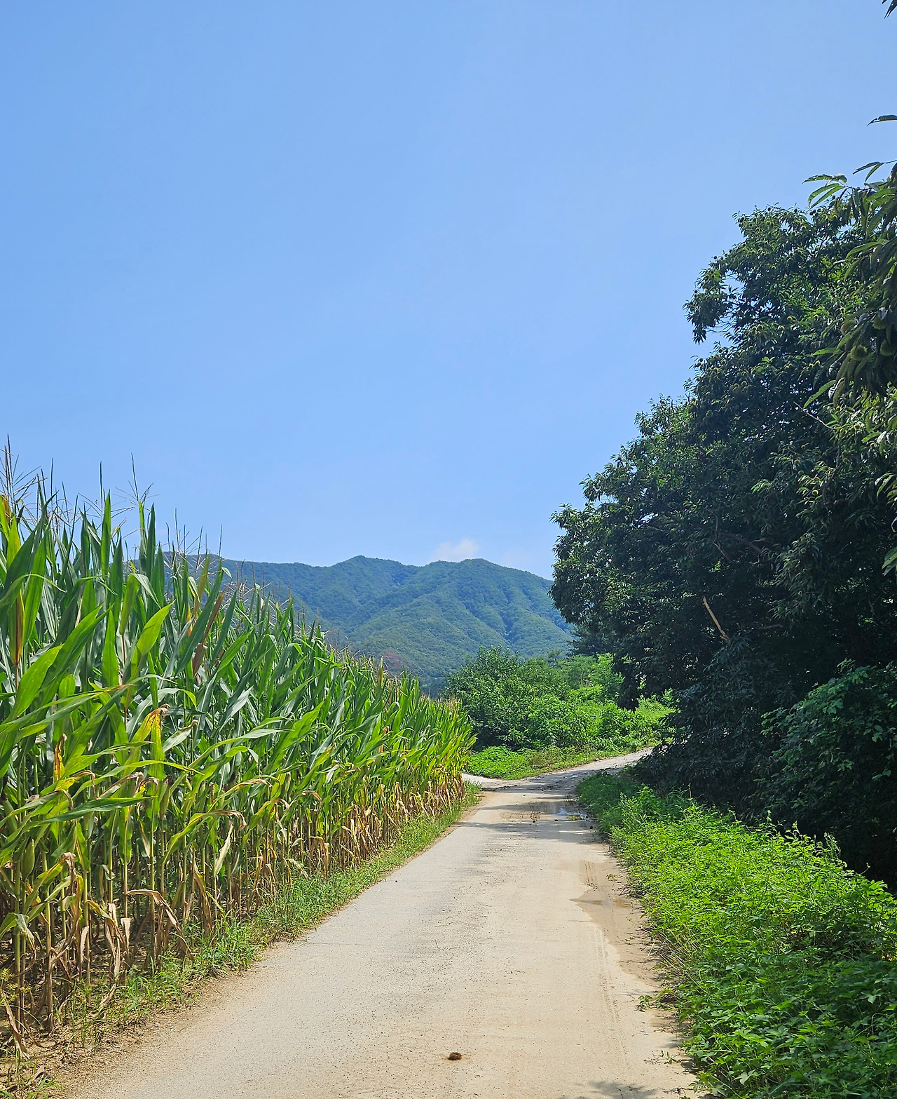 시내에서 조금만 벗어나니 이렇게 옥수수 밭이 끝도 없이 펼쳐진 시골길이 나온다는 게 신기했다. 내비게이션마저 더 이상 길을 가르쳐주지 않고 뚝 끊겨버린 그 지점에서 오른쪽으로 쭉 올라가다 보니 손을 흔들며 반기는 선생님이 보인다. 간단히 빵이나 과일, 아니며 라면을 끓여 먹어도 좋겠다고 생각했는데 황송하게도 손수 식사를 준비해 주셨다.