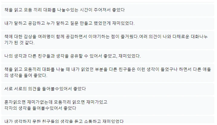 나 역시 고등학교를 졸업한 지 20년이 넘은 지금도 독서동아리에 대한 기억이 '즐거웠다'로 남아있는 것만 봐도 알 수 있다.