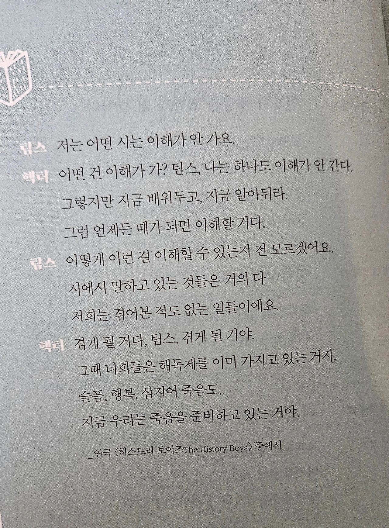 이 글은 시를 가르치는 것이 전혀 무의미하지 않다고 나를 위로하고 격려하는 듯했다.