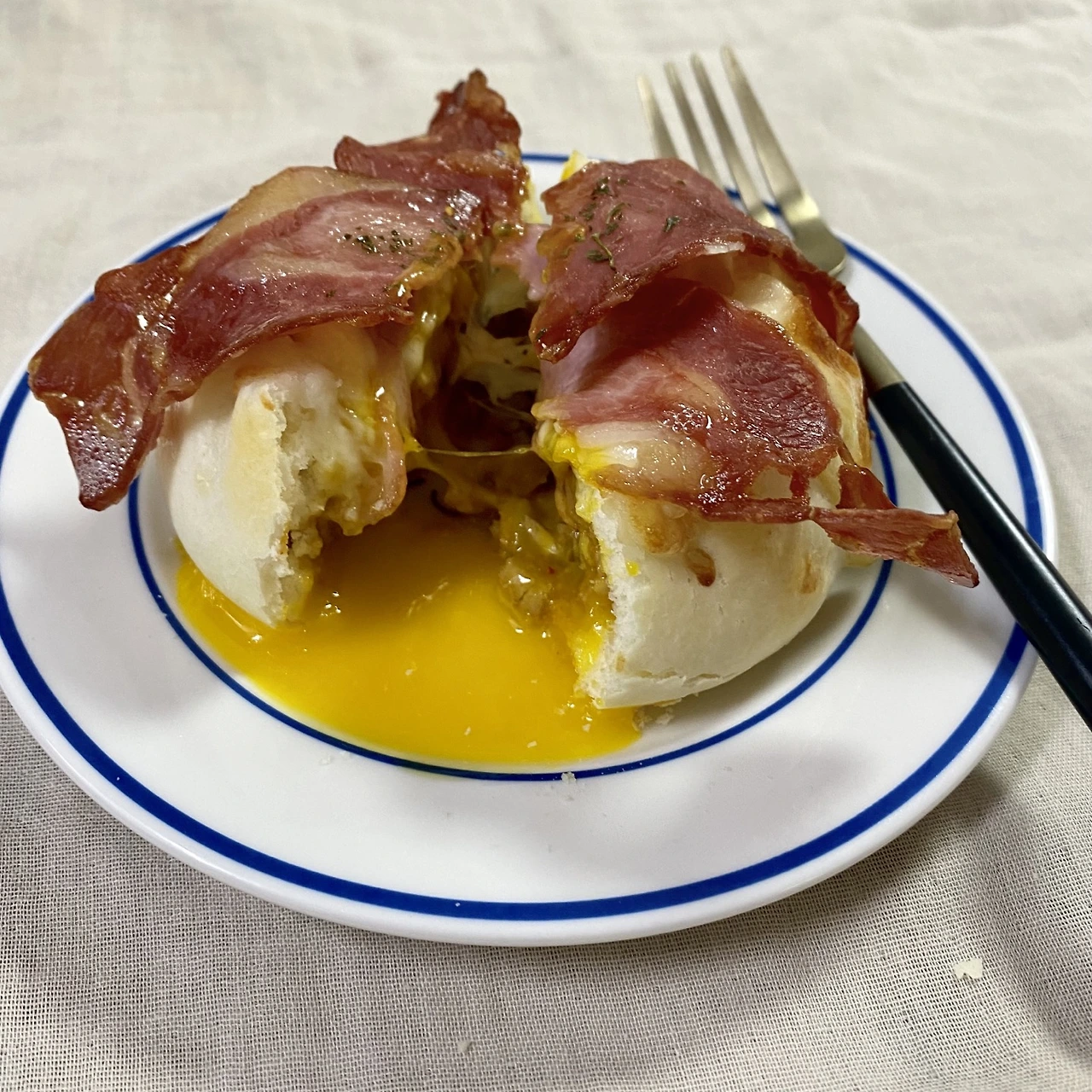 호빵 에그 번은 만드는 과정이 정말 간단해서 바쁜 아침이나, 간단한 야식으로 안성맞춤이다. 바삭하게 익은 호빵을 반으로 가르면 노른자가 터지면서 속이 촉촉해진다. 한입을 베어 물면 흘러내린 노른자와 안에 있는 치즈 덕분에 입안에 고소함이 퍼진다. 거기에 베이컨의 바삭함과 짭짤함이 더해지니 호빵 한 개가 금세 없어졌다. 꽤 든든해서 간식이 아닌 한 끼 식사로 먹기에도 충분했다.
