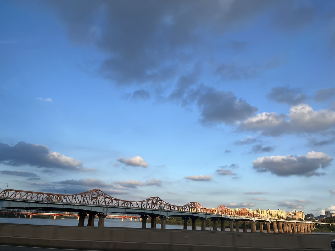 한강대교 위를 달리는 길,