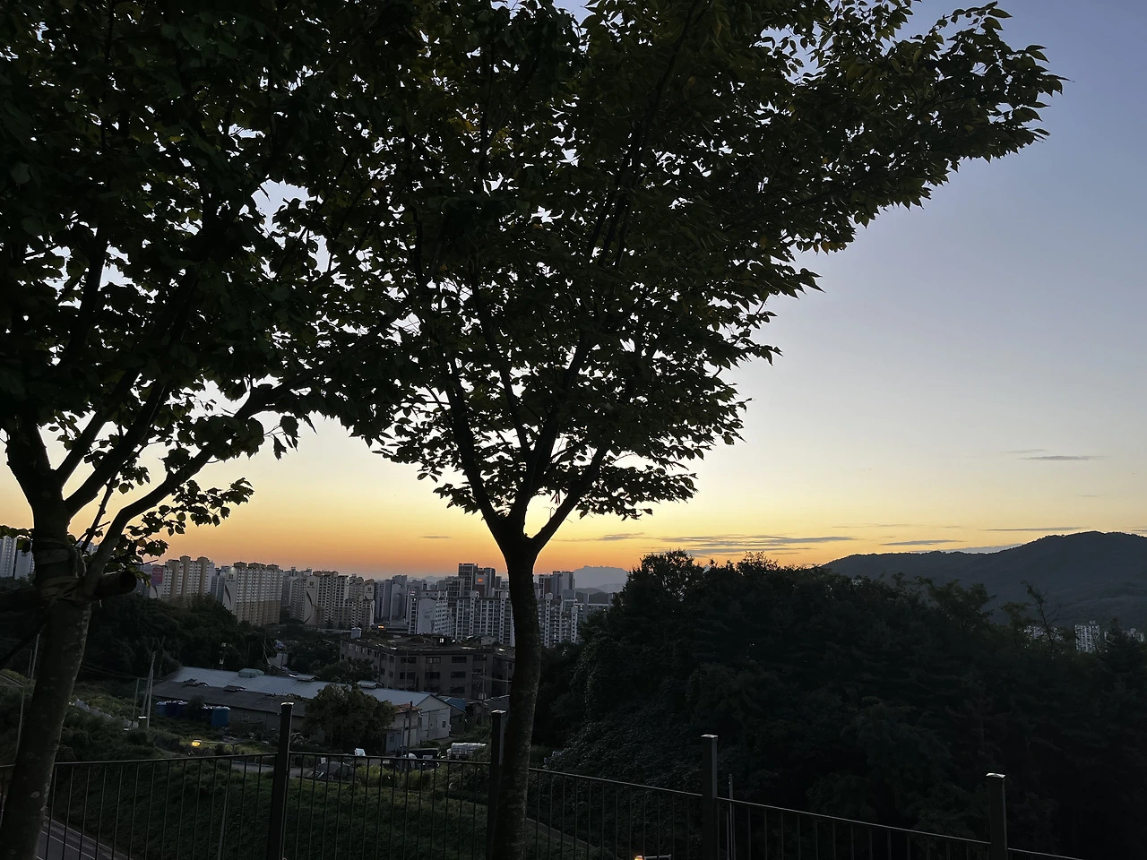 해가 지기 전, 낮은 언덕이 있는 산에 올랐다.