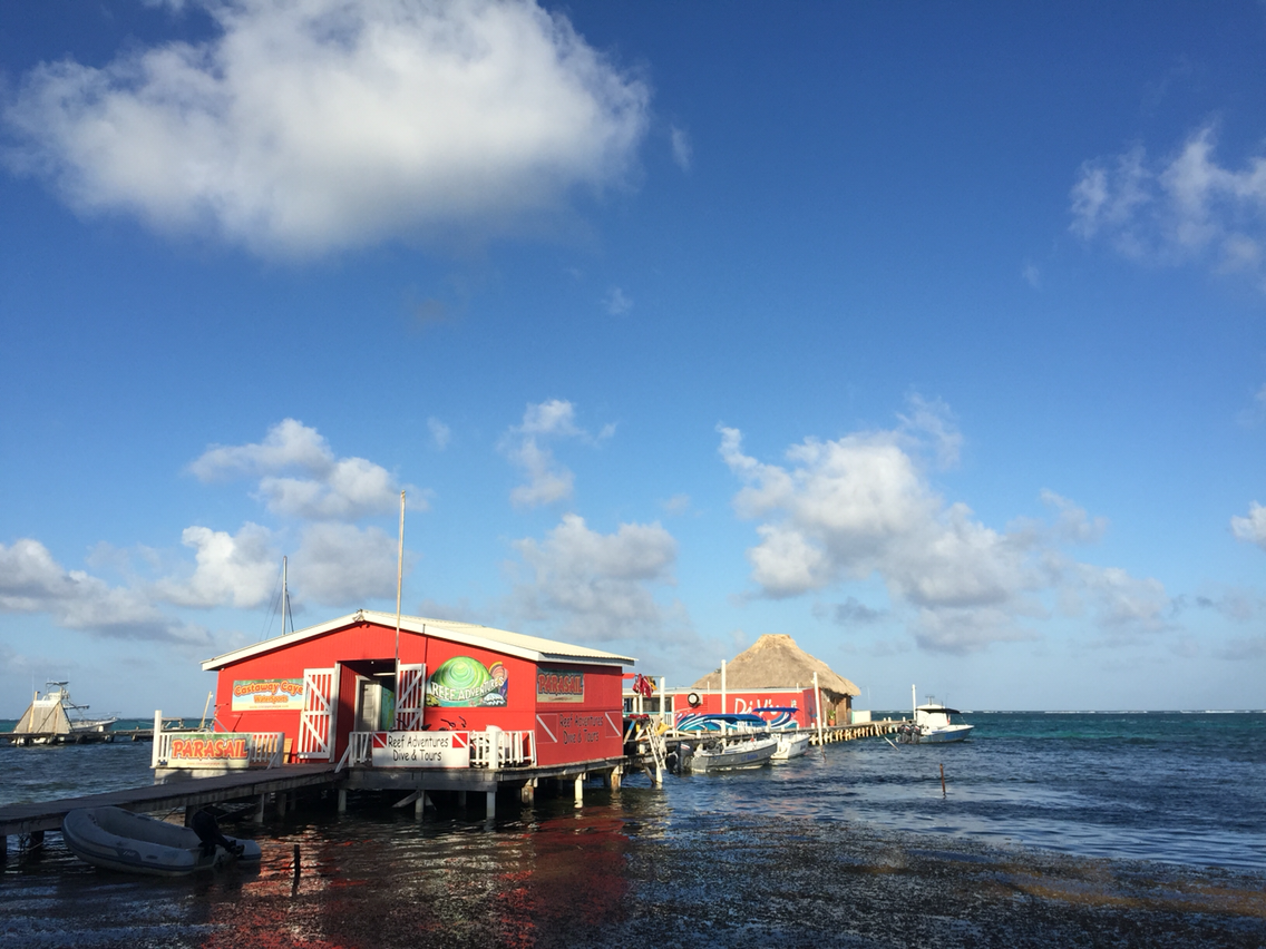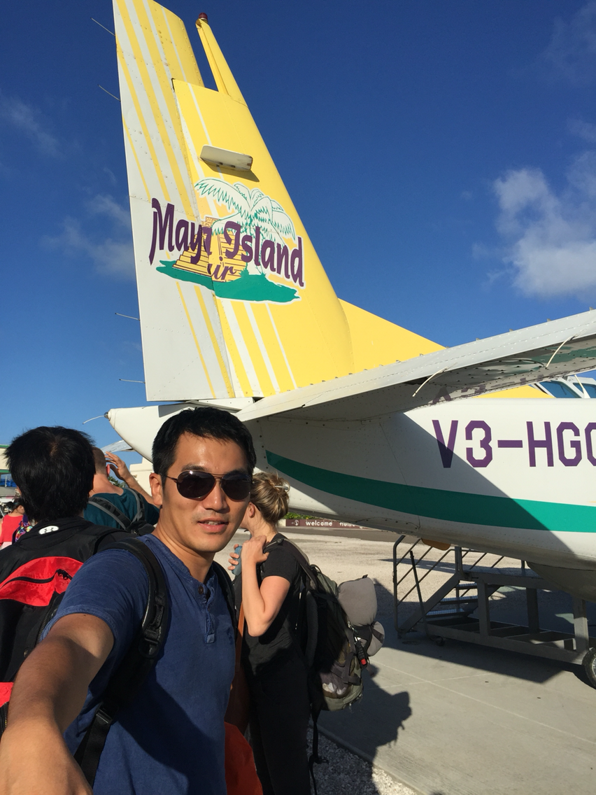 시카고에서 벨리즈를 가는 직항은 없고 마이애미를 거쳐서 가야 한다. 마이애미에서 작은 비행기로 바꿔 타고 5시간쯤 가면 벨리즈에 도착하는데, 공항도 세관도 조금 축축하고, 허름하고 남미스러웠다. 거기서 다시 Maya Islands라는 이국적인 외관의 경비행기로 바꿔 타고 30분쯤 들어가면 우리가 머무를 첫 번째 호텔인 Blue Tang Inn에 도착한다. Blue Tang Inn, 말 그대로 '블루탕(벨리즈에 사는 물고기) 여관'이다. 미국의 대학생들이 봄방학에 단체로 놀러 오는 숙소 같은 느낌이었다.