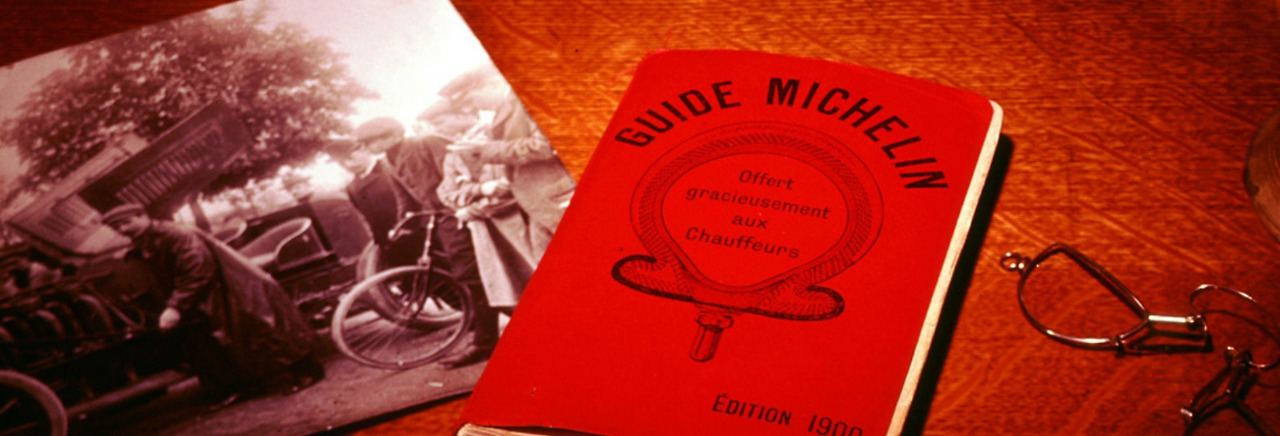 1889년 프랑스 중부의 Clermont-Ferrand지역에 살던 Andre and Edouard Michelin 형제는 타이어 회사를 설립했습니다. 당시 프랑스 전역에 자동차는 약 3천 여대 정도에 불과했었어요. 회사를 더 키우기 위해서는 전반적인 산업의 파이를 키우는 것이 중요했습니다. 그래서 어떻게 하면 더 많은 사람들이 겁먹지 않고 자동차를 쉽게 타고 다닐 수 있을까 그 방법을 고민했습니다. 그리고 떠오른 아이디어는 바로 한 손에 쉽게 들어오는 작은 가이드북이었지요. 그 안에는 지도나 타이어 교체 장소, 주유소 등에 대한 정보가 들어있었고, 또 호텔과 식당 리스트가 들어있었지요. 단순히, 긴 여행 후에 지친 운전자들이 먹을 곳과 쉴 곳을 찾아 헤매는 번거로움을 피해주기 위해서 말이지요.