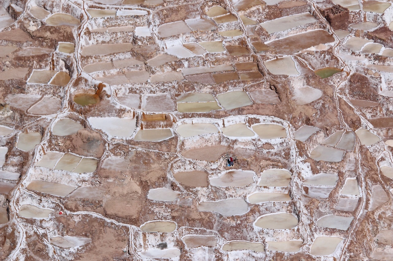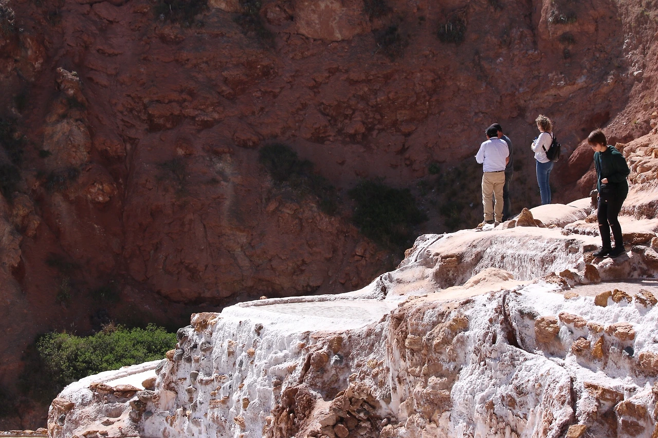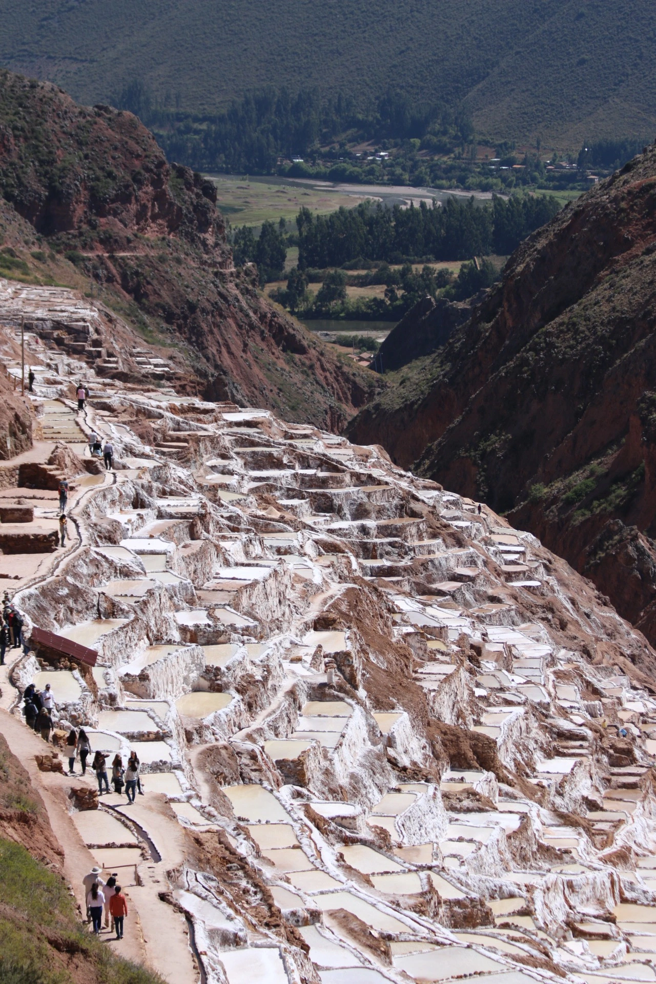 입구를 지나면 이제 계곡처럼 생긴 곳이 나타나는데 그곳이 바로 그림에서만 보던 마라스 염전이다. 구획되어있는 웅덩이마다 뜨거운 태양빛을 하루 종일 내리쬐면서 염전마다 각자 다른 색감의 하얀색 소금을 만들어내고 있었다. 산 위에 어떻게 이런 하얀 염전이 있는지 한참을 들여다봐도 신기했다. 잉카 문명 이전 시대부터 이 곳에 살던 사람들은 안데스 산맥의 어딘가에서부터 흘러나오고 있는 물이 미네랄이 듬뿍 들어있는 짠 물이라는 것을 알게 되고 이것을 이용해 소금을 만들기 시작했다고 가이드는 설명해줬다. 실제로 염전 옆에 산에서 흘러나오는 개울물이 있어 찍어먹어 보니 따끈한 소금 맛 물이었다. 아이도 신기한지 계속 찍어먹어 보면서 "에구, 짜!"했다. 바다 염전보다 이 수상한 안데스 소금밭을 먼저 만나본 아이는 어쩌면 소금은 산에서 나는 것이라고 생각할 수 있겠구나 싶었다. 뭐, 틀린 건 아니니.