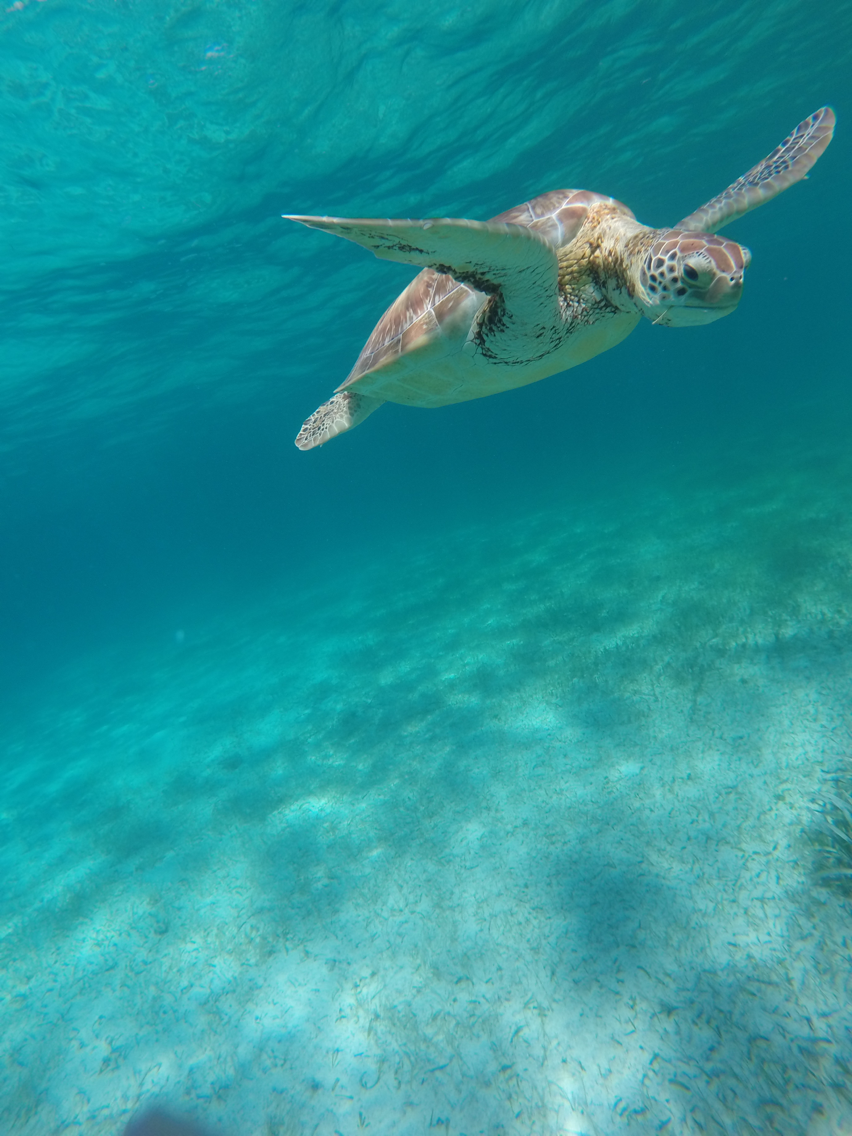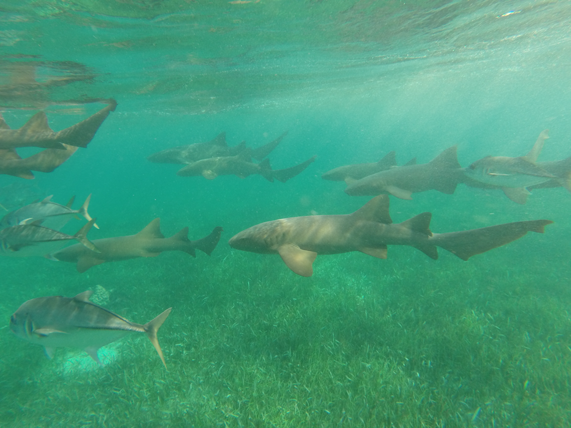 벨리즈의 바닷속은 그 어떤 곳보다 흥미롭다. 블루홀 같은 곳은 전문가들이 가는 곳이지만 나 같은 초보자들도 충분히 즐길 수 있는 곳들이 많다. 하와이, 사이판, 피지 등 다이버들이 선호하는 다양한 곳에서 다이빙을 해봤지만, 벨리즈는 그중에서도 단연 최고였다. 100살은 넘어 보이는 큰 거북이와 같이 수영을 할 수도 있고, 또 상어들로 득실거리는 바닷속을 구경할 수도 있다. 물론 식인 상어는 아니지만, 다시 사진으로 봐도 오싹하다. 자연 훼손이 없는 지역이기 때문에 물이 맑은 것은 두말할 것도 없다.