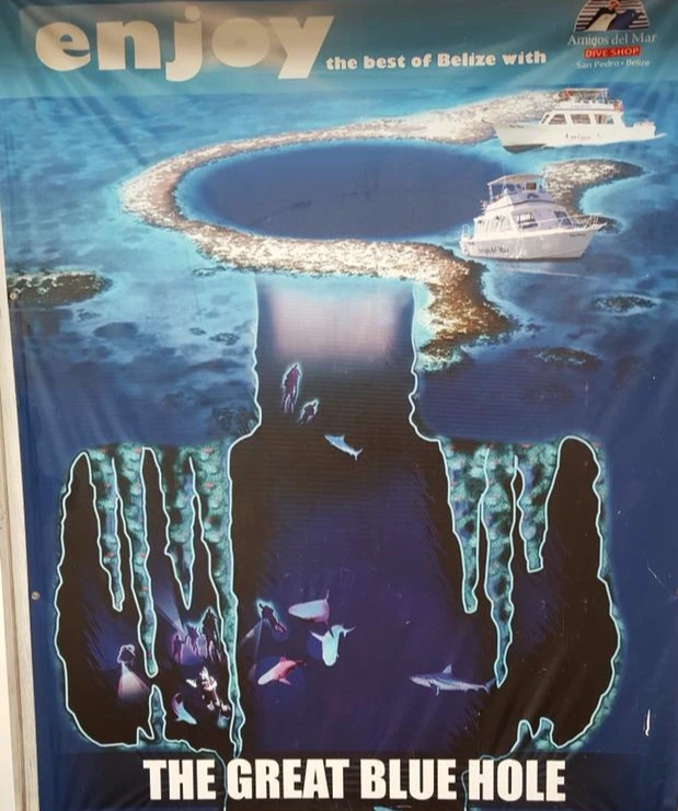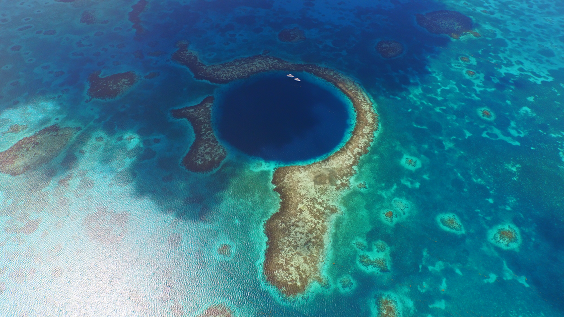 벨리즈를 얘기할 때 빼놓을 수 없는 곳이 바로 더 그레이트 블루홀(The Great Blue Hole)이다. 잠깐 위키피디아의 지식을 빌리자면, 블루홀은 지름 300미터, 깊이 124m의 말 그대로 바다에 있는 커다란 파란 구멍이다. 빙하기 동안 해수면이 낮아졌을 때 형성됐다. 153,000년 전과 66,000년 전, 그리고 60,000년 전과 15,000년 전에 걸쳐 만들어졌으며, 유네스코 세계유산이다. 호리병처럼 생긴 모양 때문에 전 세계 다이버들이 모여드는 곳이기도 하고, 또 그만큼 위험해 다이버들의 무덤이라는 무시무시한 이름을 가지고 있기도 하다.