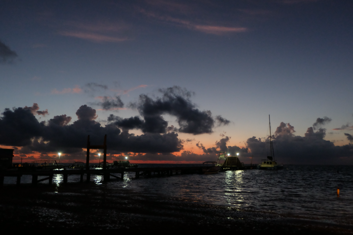 저녁노을로 물든 벨리즈의 하늘은 블루홀의 블루에 대비되는 강렬한 레드다. 우리가 출발했던 곳으로 다시 돌아오니 어둑어둑 밤이 찾아온다. 바다를 하늘처럼 날아다니던 100살 먹은 거북이도, 무시무시한 이빨을 드러내며 사납게 돌아다니던 상어들도, 한낮에 한참을 놀다가 평소보다 집으로 돌아가는 길이 멀었을 돌고래들도, 잠드는, 그런 벨리즈의 밤이다.