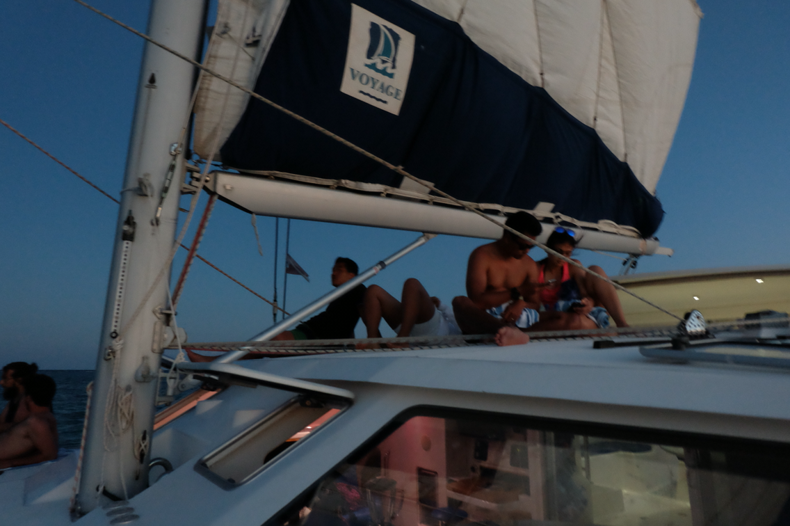 이번 벨리즈 커플 트립을 다녀와서 느낀 건, 정말 외국 아이들은 커플들끼리 사랑을 표현한다는 거였다. 좀 이상하게 들릴 수도 있는데, 이들은 인생의 중심이 확실히 부부에 있다. 물론 나이 상으로 결혼한 지 얼마 안된 커플들이라 그럴 수는 있겠다. 하지만 분명 달랐다. 새로 만난 친구들과의 우정보다는 자기 짝꿍 챙기는 게 우선이다. 한국 사람들끼리 만약 하루 종일 요트를 탔다면 이런 모습일 것이다. 남자팀 따로 여자팀 따로 나뉘어, 수다를 떨거나 술 마시거나 하며 끈끈한 우정 다지기. 하지만 여기 벨리즈 커플 트립에서는, 다시 본 섬으로 돌아오는 저녁노을 지는 시간이 되자, 누가 먼저랄 것도 없이, 자기들이 마음에 드는 요트의 한 구석에 자리 잡고 둘이서만 소곤소곤 대화하거나 지는 노을을 구경했다. 나랑 남편도 어디 가면 사이 되게 좋아 보인다고 얘기 듣는 편인데, 우리에게도 이 상황은 상당히 어색했다. 문화 충격이었다.