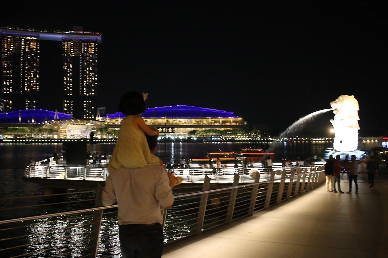 사실 이게 첫날 우리가 한 기록 전부이다. 라운지에 가서 간단하게 간식과 음료수를 먹고 다시 나가려고 마음먹었지만, 아이와의 여행은 언제가 그렇듯이 머릿속 계산처럼 딱 떨어지지 않는다. 밖에 나가는 대신 호텔 이 곳 저곳을 탐방했다. 그리고는 방에 들어가서 아이와 긴 밤잠 같은 낮잠을 잤다. 남편의 퇴근 소리에 눈을 억지로 뜨고도 한동안 잠에 취해있다가 저녁으로 칠리크랩을 먹으러 가자 비로소 눈이 떠졌다. 저녁을 먹고 아침에 갔던 머라이언 파크까지 다시 동네 한 바퀴 산책을 하는 사이 우리의 몸도 서서히 싱가포르 시간에 맞춰지고 있었다. 오늘은 하루의 딱 절반만큼을 사용했으니 내일은 조금 더 써봐야겠다.