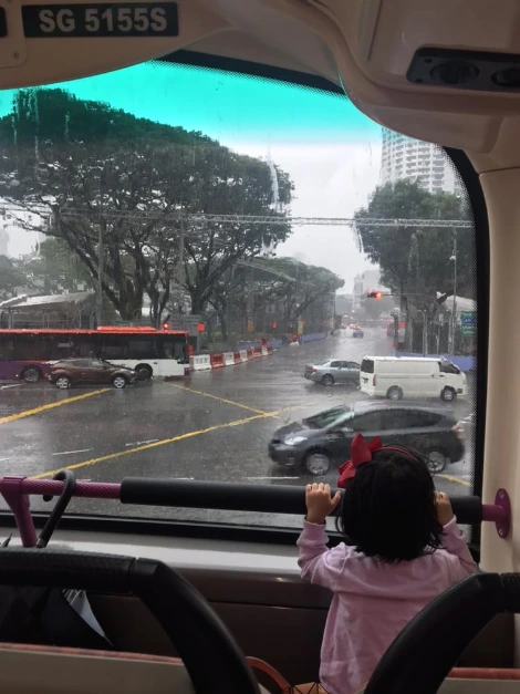 아이는 무료 탑승이고 어른은 싱달러 1.50. 잔돈은 거슬러 주지 않기 때문에 난 가방을 뒤져 1불짜리 동전 두 개를 찾는 동안 아이는 혼자 2층으로 올라가 자리를 잡았다. 버스 안은 텅 비어있었고 싱가포르답게 에어컨 쌩쌩, 매우 쾌적했다. 난생처음 2층 버스를 탄 아이는 신이 나는지 한참 동안을 창 밖 구경을 하더니, 이내 내 무릎에 올라와 쿨쿨 깊은 낮잠에 빠졌다. 창 밖엔 여전히 폭우가 쏟아지고 있었다. 다음 정거장이 바로 미술관이지만 도저히 이 잠든 아이를 데리고 내릴 수가 없어서 우린 그대로 정류장을 지나쳤다.