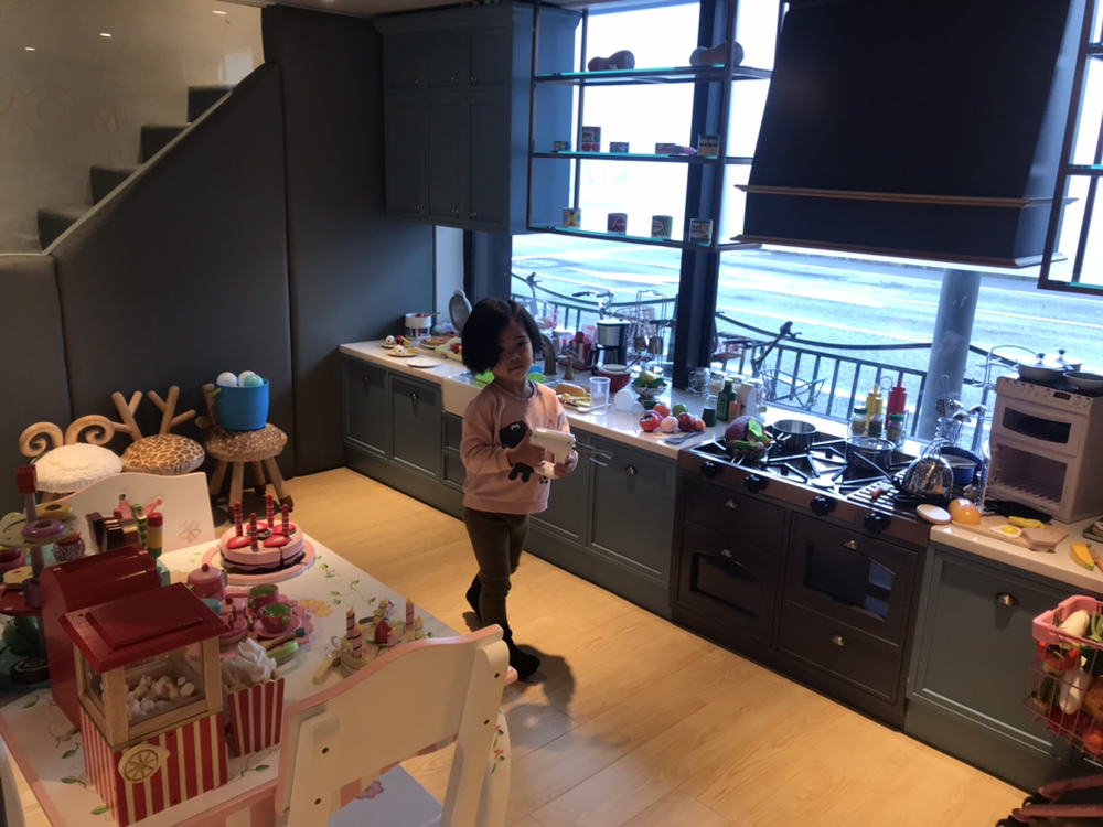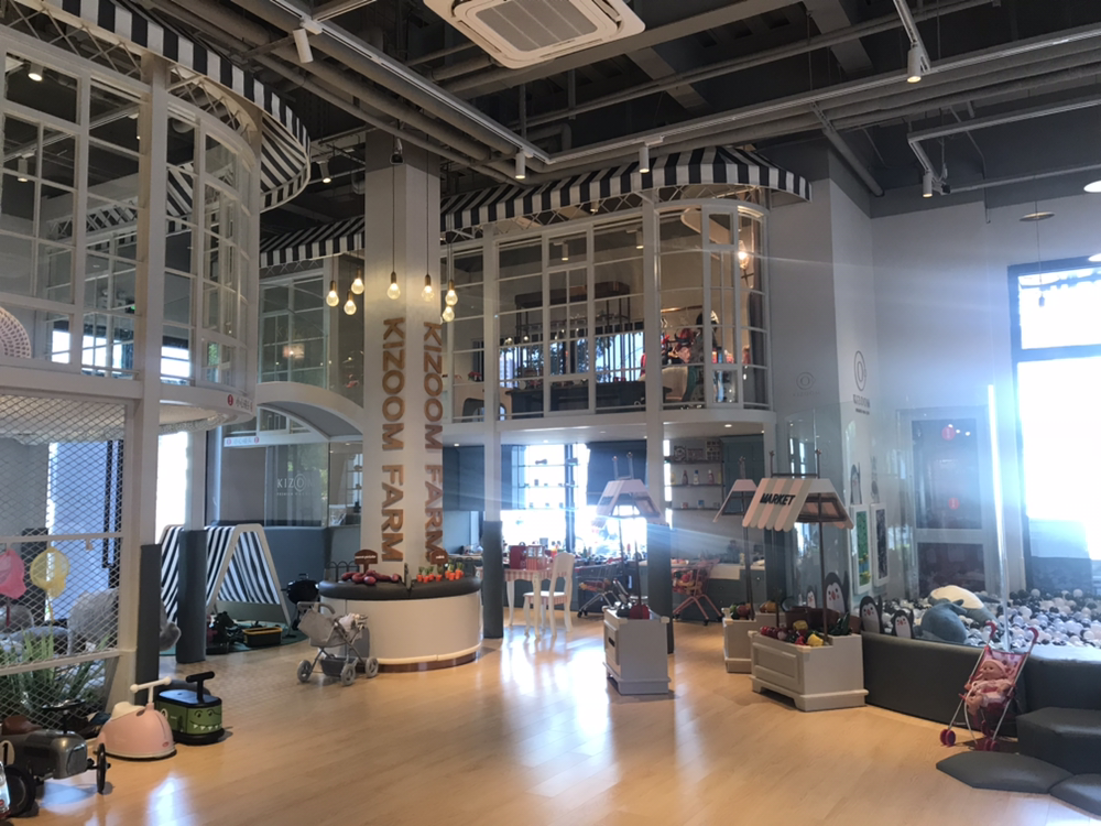 어쨌든 제가 그렇게 세계 최고라고 손꼽았던 서울의 육아 인프라에서 한 술 더 뜬 곳을 이번에 발견했어요. 바로 상하이의 떠오르는 지역인 웨스트 번드 아트 디스트릭트에서 말이죠. 자연 친화적으로 만들어진 건물들 사이에 새로 생긴 키즈 카페가 있어서 들어갈까 말까 혼자 고민을 하던 중에 아이의 레이더망에 이 곳이 들어왔습니다. 구경이나 해볼 겸 들어갔는데 그동안 서울에서 봤던 그 어떤 키즈카페보다 더 깨끗하고 새로운 시설이었어요. 입장료와 음식 메뉴는 심지어 청담동 키즈카페 가격보다 배로 비싸서 조금 고민을 했지만, 매니저 분의 한 마디에 바로 티켓을 끊었습니다. 거기 계신 선생님들이 2시간 동안 아이들을 1:1 케어를 해주신다는 듣던 중 반가운 소리에 제 마음이 사르르 녹아버린 것이지요.