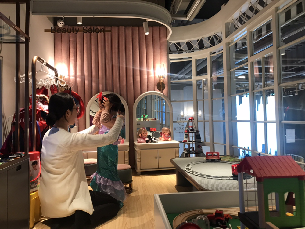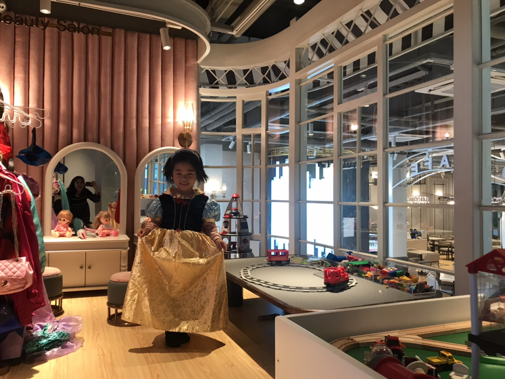 아이가 노는 두 시간 내내 선생님 한 분이 아이를 쫓아다니며 재밌게 놀아주었습니다. 아이가 온갖 디즈니 공주 드레스를 입어보고 싶다고 하면 하나하나 입혀주시고, 아이가 가고 싶다는 대로 따라다니며 아이의 기분을 맞춰 주셨지요. 신문에서만 보던 중국의 예전 1가구 1자녀 정책에 의한 '소황제 & 소공녀' 라이프가 바로 이런 거겠구나 싶었어요. 아침에 엄마가 샤워만 시켜주면 혼자 로션 바르고, 옷 입고, 신발 신고, 유모차에 올라가 착석해야지 유치원에 등원할 수 있는 미국에서의 생활에 익숙하던 아이도, 마치 태어날 때처럼 이런 공주 대접을 받고 자라난 아이처럼 익숙한 듯 그 꿈같은 두 시간을 만끽했습니다. 평소라면 '혼자 해. 도와주지 마세요.'라고 간섭했겠지만, 뭐, 생각해보면 이것도 아이에게 새로운 나라 문화 체험이려니 내버려 뒀습니다. 언제 또 이런 호강을 누려보겠어요? 아이도, 저도 말이지요.