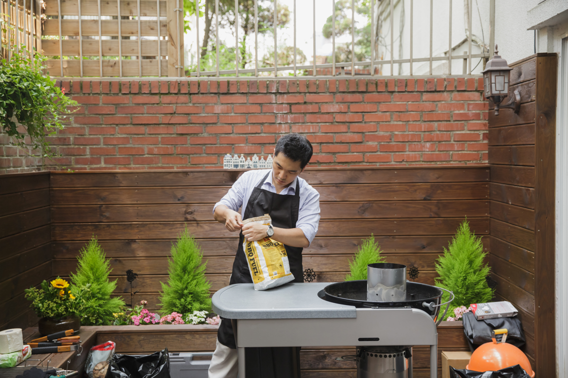 음식은 지하 베란다에서 바비큐 구이를 했다. 엄마가 수산시장에 가서 싱싱한 대하를 넉넉하게 주문하시고, 소고기와 삼겹살, 야채 등을 바비큐 그릴에 구웠다. 바삭바삭하게 굽는 것을 좋아하는 우리 식구들 입맛에 맞게 남편이 맛있게 구워주었다. 다른 복잡한 음식 대신, 파무침, 김치찌개, 밥 딱 이렇게 세 가지 테이블에 차려 놓고 각자 원하는 만큼 드시도록 뷔페 형식으로 준비했다.