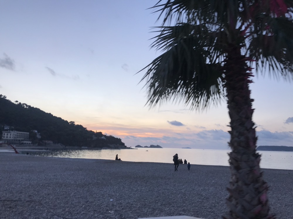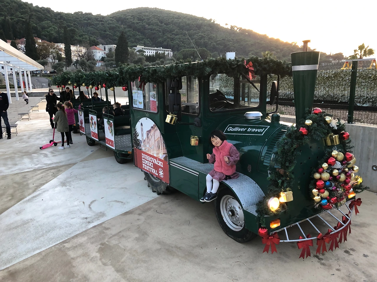 늦은 점심을 먹고 우린 다시 식당 밖으로 나왔다. 호텔로 돌아갈까 잠깐 고민을 했지만, 우린 모험을 시작한 이상 좀 더 탐험을 해보기로 했다. 길목 간판에 쓰인 'Sunset Beach'를 가보기로 했다. 뭐가 있을지는 아무것도 몰랐지만 왠지 석양이 지기 시작한 이 시간에 이 곳만큼 좋은 곳은 없을 거란 생각이 들었다. 아이와 노래를 부르면서 10분 정도 언덕을 걸었을까, 다시 아드리안 해가 보이기 시작했다. 그리고 저 멀리 크리스마스 장식을 한 트롤리버스가 보여 우린 최선을 다해 달려 그 버스에 탔다. 그건 두브로브니크 시에서 연말에 도시 곳곳에서 진행하는 크리스마스 프로그램 중의 하나였는데 Sunset beach를 한 바퀴 도는 것이었다. 온 동네 아이들이 엄마, 아빠와 다 나와서 이 버스를 타려고 나와있었다. 이런 행운이! 기대하고 왔으면 별 거 아닌 거였겠지만, 아무 기대 없이 오니 이런 것 마저 행복하게 느껴졌다.