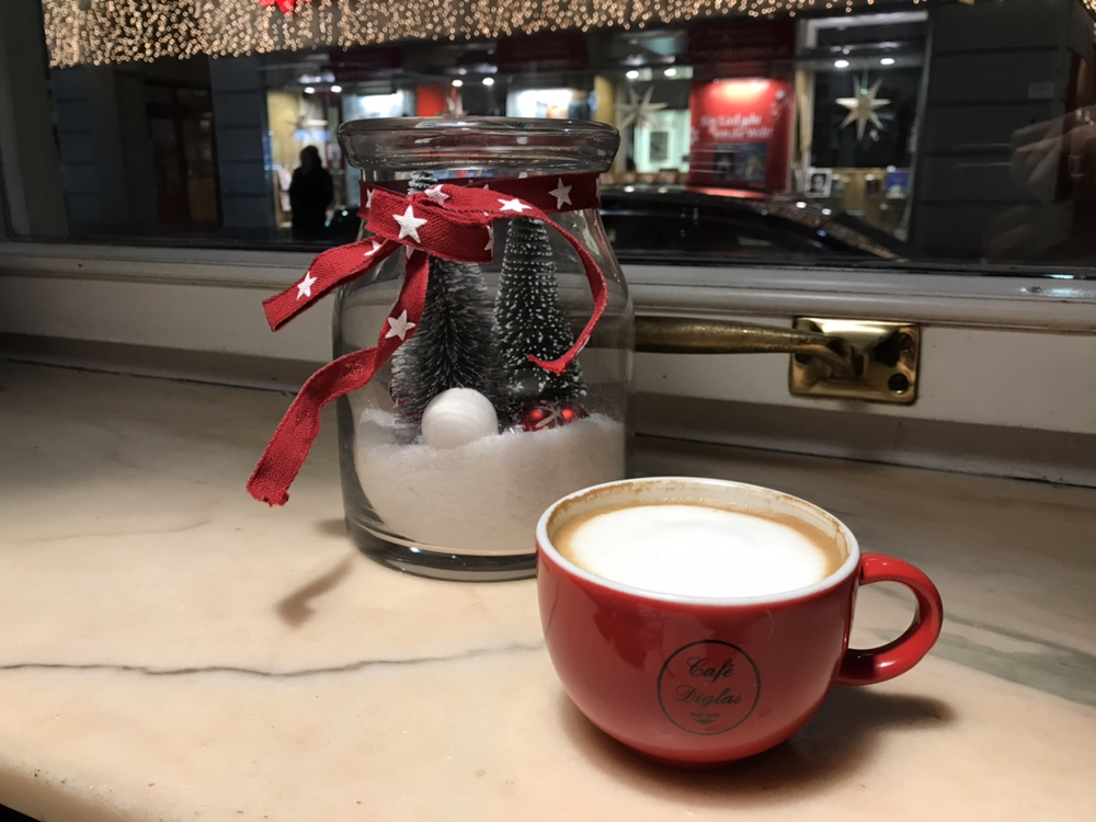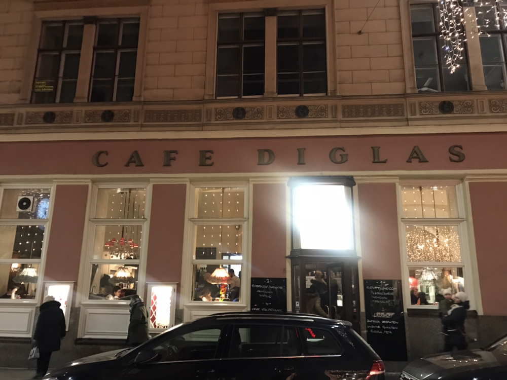 슈니첼을 맛있게 먹었다면 밖으로 나와 운치 있는 돌길을 잠깐 걸으면 아빠가 발견한 멋진 카페가 나온단다. Cafe Diglas라는 곳인데 무려 1875년에 문을 연 곳이란다. 아빠는 엄마가 글을 쓰는 걸 정말 좋아하는데, 항상 여행을 다닐 때면 엄마가 글에 활용할 수 있도록 소위 '블로그용 사진'을 열심히 찍어주지. (그런데 신기하게도 아빠의 사진 구도 실력은 몇 년이 지나도 제자리걸음이라 실제로 쓸 수 있는 사진은 거의 없단다) 오늘도 아빠는 엄마를 위해 이 1875년이란 숫자가 담긴 간판을 열심히 찍어줬어.