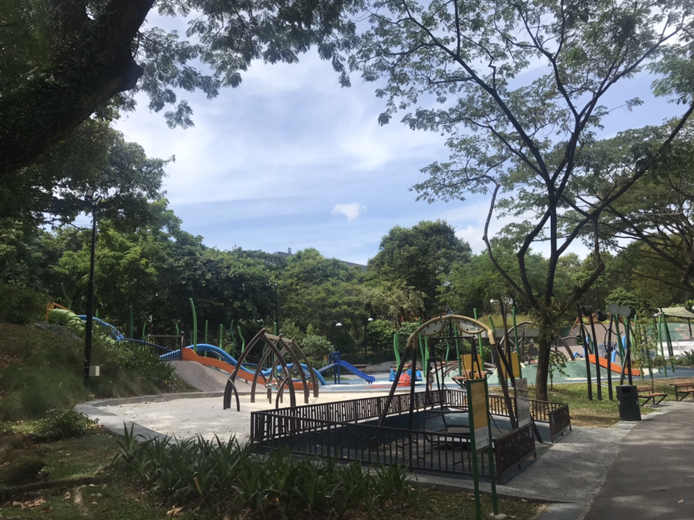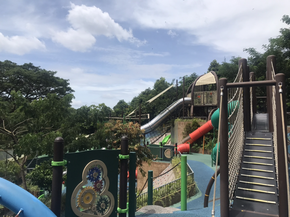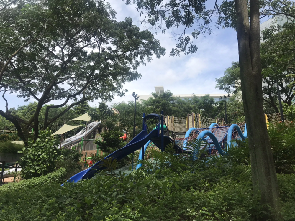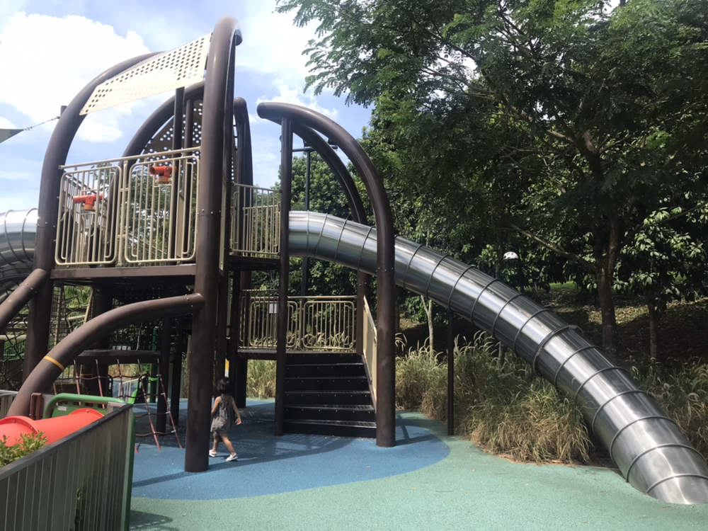 드디어 도착한 Admiralty 공원은 생각보다 작았지만, 깨끗하고 여유로웠다. 듣던 대로 놀이터 시설이 정말 훌륭하게 잘 만들어져 있었다. 작은 언덕을 깎지 않고 그대로 살려 3층 높이에서부터 내려올 수 있는 미끄럼틀도 있고 마치 땅 속 굴로 들어가는 듯한 느낌을 주는 미끄럼틀도 있었다. 오랜만에 놀이터에 온 아이는 놀란 입을 다물지 못하며 방방 뛰었다. 휠체어를 탄 장애인들이 탈 수 있는 그네도 있었는데, 미국이나 유럽에서도 이런 그네를 본 적이 없는 이런 유니버설 디자인의 놀이터가 싱가포르에 있다는 점이 인상적이었다.