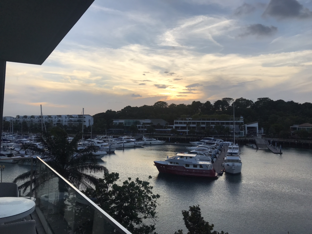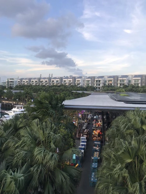 새로 옮긴 센토사의 호텔로 돌아오자마자 아이와 나는 테라스에 있는 야외 침대에서 잠이 들었다. 어디선가 들려오는 연주 소리와 달콤한 바비큐 냄새, 그리고 부드러운 바람에 잠이 깨어 눈을 떠보니 석양이 반쯤 지고 있었다. 어둑어둑해지려고 하는 센토사 코브 마을에 하나 둘 불이 켜지고 있었다. 아마도 오늘 밤도 제시간에 잠이 들기는 힘들 것 같다.