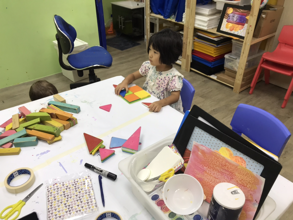 아이가 말도 잘 안 통하는 싱가포르 미술 학원을 이토록 좋아하는 이유는 뭘까? 여기 미술 학원은 나이대별로 수업 내용이 다르지만 기본적인 수업 형식은 비슷하다. 우선 수업 시작 전에 15분 정도 미리 와서 그 날 수업을 받을 친구들과 함께 어울려 놀 수 있는 시간이 주어진다. 아이들은 블록 놀이도 하고 자석 놀이도 하면서 공간에 익숙해질 시간을 갖는다. 수업 내용과는 상관이 없다.