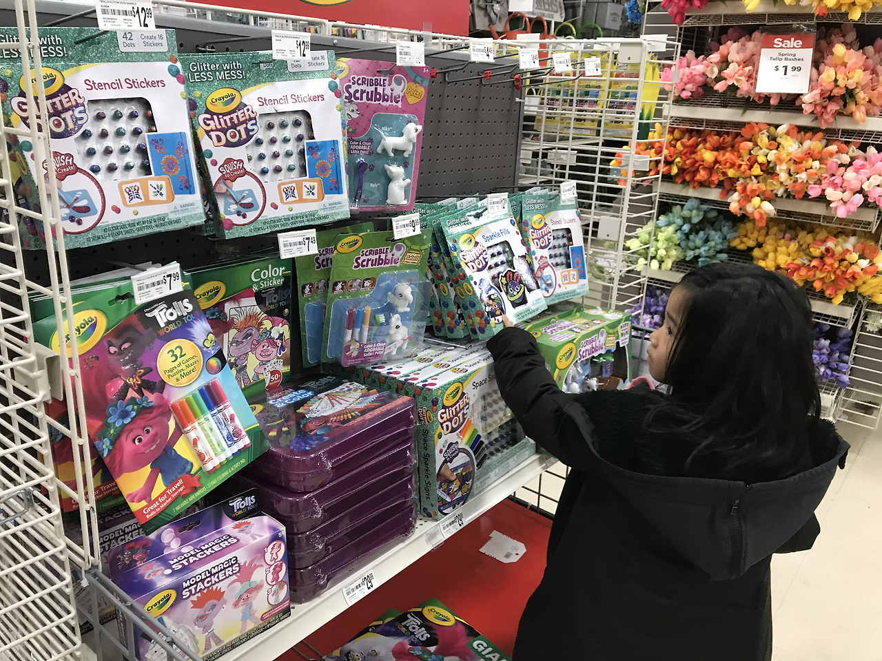 한국의 엄마들이 집에서 심심해하는 아이들을 위해 쿠팡을 뒤지듯, 나도 여기서 아이가 시간을 보낼 수 있는 아이템들을 찾아 아마존을 헤맸다. 미국에 온 지 며칠 안돼 5번째 생일을 맞이한 아이에게 생일 선물로 뭘 할까 고민을 하다가, 엄마, 아빠 안 찾고 혼자 충분히 가지고 놀 수 있어 보이는 스티커 만드는 기계를 선물해줬다. 아이가 직접 색깔을 칠하고 향기를 덧입혀 스티커를 만들 수 있게 하는 장난감이다. 잠깐 장 보러 나가는 길에 아트, 크래프트 재료를 파는 마이클스에 들러 아이에게 원하는 것을 3개 고를 수 있게 해 줬다. 평소라면 구경만 하고 나오거나 기껏해야 1개 고를 수 있게 해 줬는데 3개씩이나 고르라니, 아이는 이게 웬 떡인가 싶어 비즈, 반짝이, 스티커 등을 장바구니에 3개 담았다. 아이의 이 지루한 시간을 잘 보낼 수 있게 도와준다면 그것이 무엇인들!