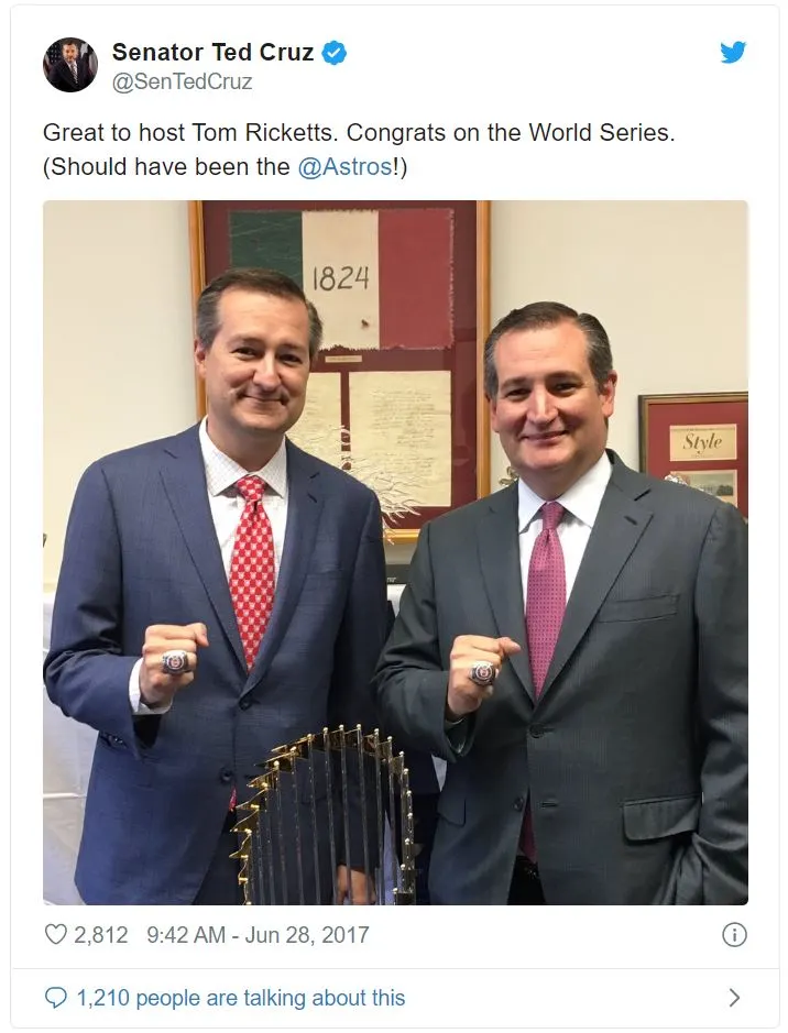 Zoom 강의에 조금 늦게 참여한 나를 가장 먼저 맞이한 것은 Tom Ricketts 구단주의 코로나바이러스 '재택근무 수염 (goatee)'이었다. 미국 공화당 대선후보였던 Ted Cruz 상원의원의 닮은꼴로 알려졌고, 시카고 컵스 경기와 TV에 늘 말끔히 면도한 모습으로 등장하던 Tom Ricketts였지만 그 또한 코로나바이러스 앞에선 사람이었다. 재택근무가 시작된 후 면도를 중단하고 '재택근무 수염'을 기르기 시작한 것이다.