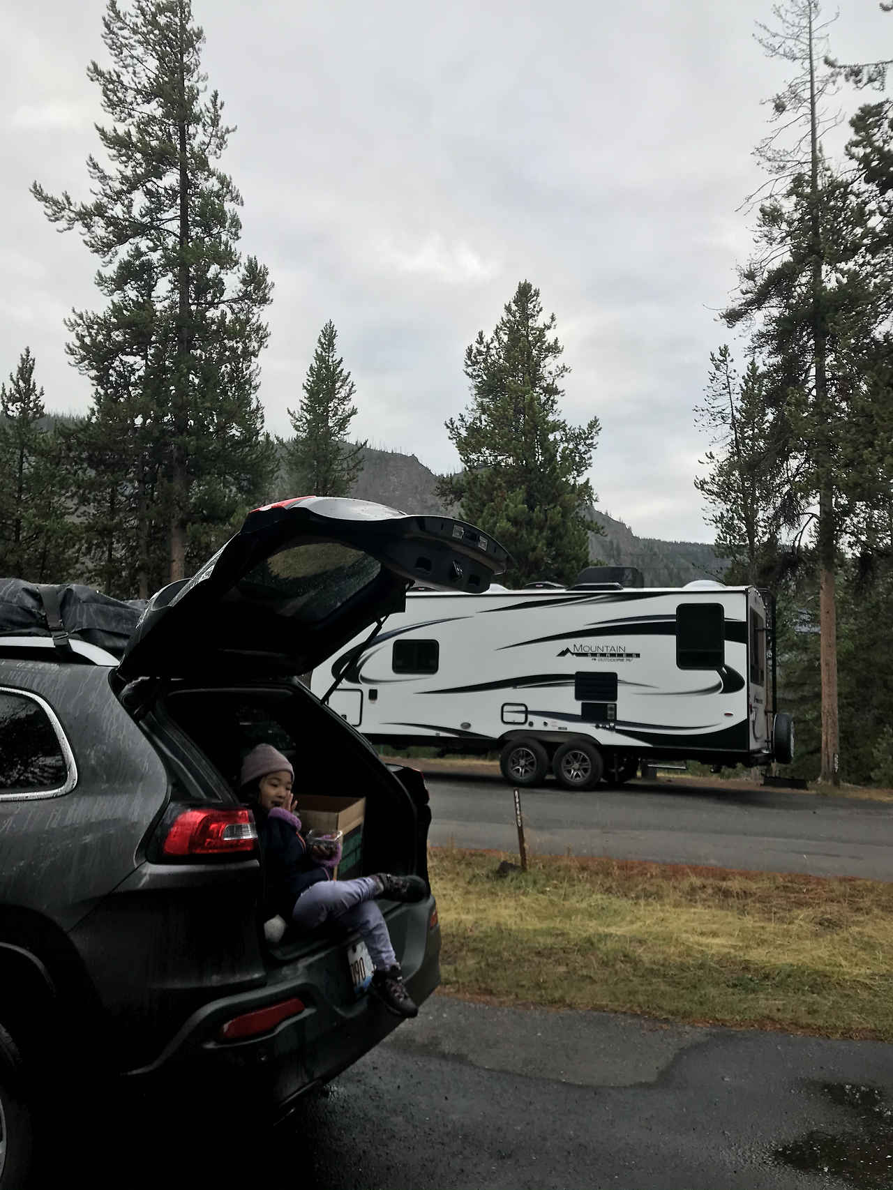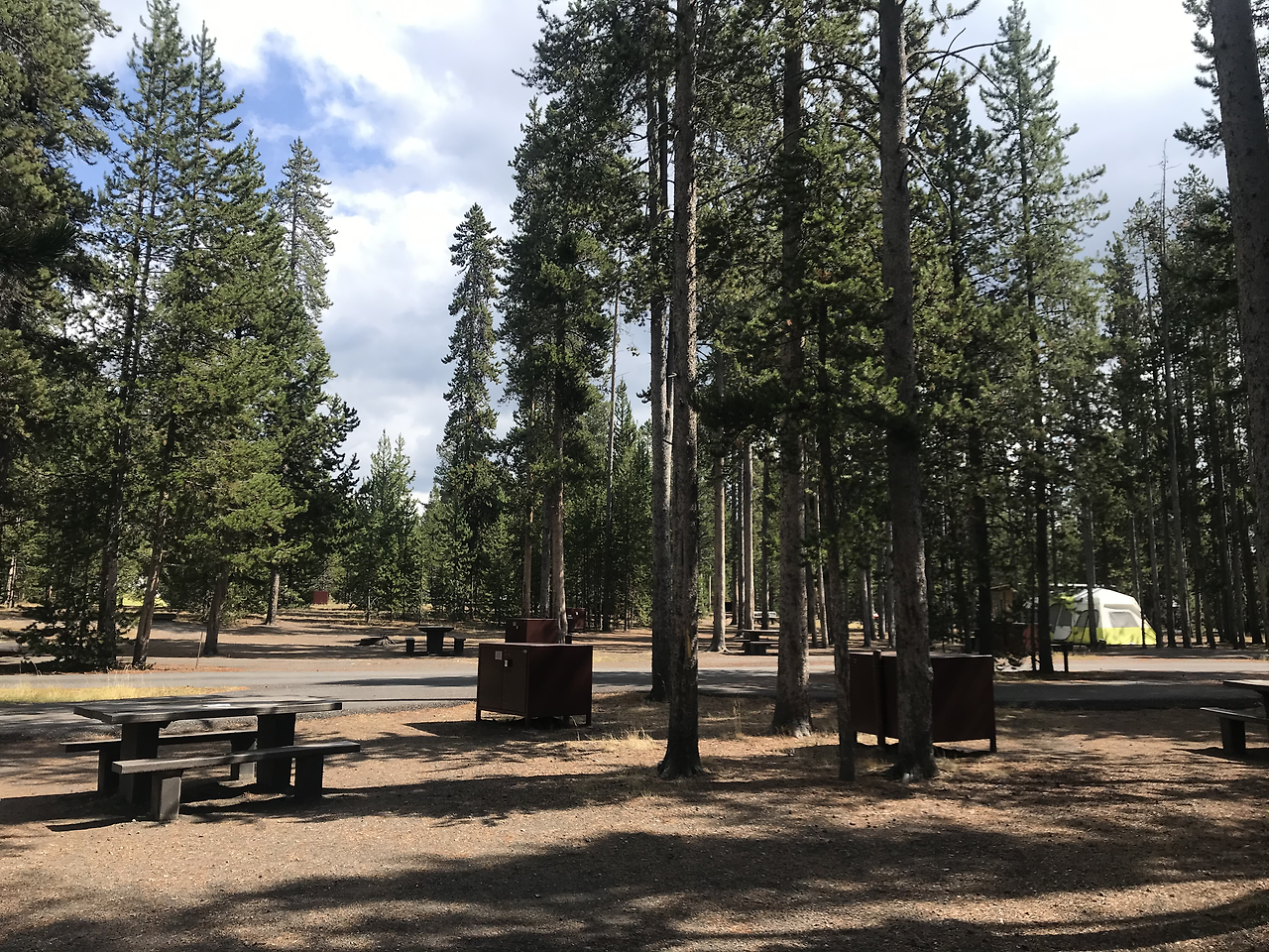 캠핑장 입구에서 체크인을 하고 드디어 도착한 우리 집 땅. 앞으로 삼일 동안 우리의 보금자리가 되어줄 아주 소중한 땅이지요. 사실 이때만 하더라도 언제, 어디에서 곰이 뛰쳐나와 우리를 공격할지 모른다고 착각(?)한 상황이었기 때문에 셋이 계속 함께 붙어 있었어요. 아이한테 계속 "이리 바짝 붙어, 곰 나와!" 소리를 지르면서 말이지요. 옐로스톤 여행이 다 끝나고 지금 생각해보니 그게 얼마나 웃긴 행동이었는지 몰라요.