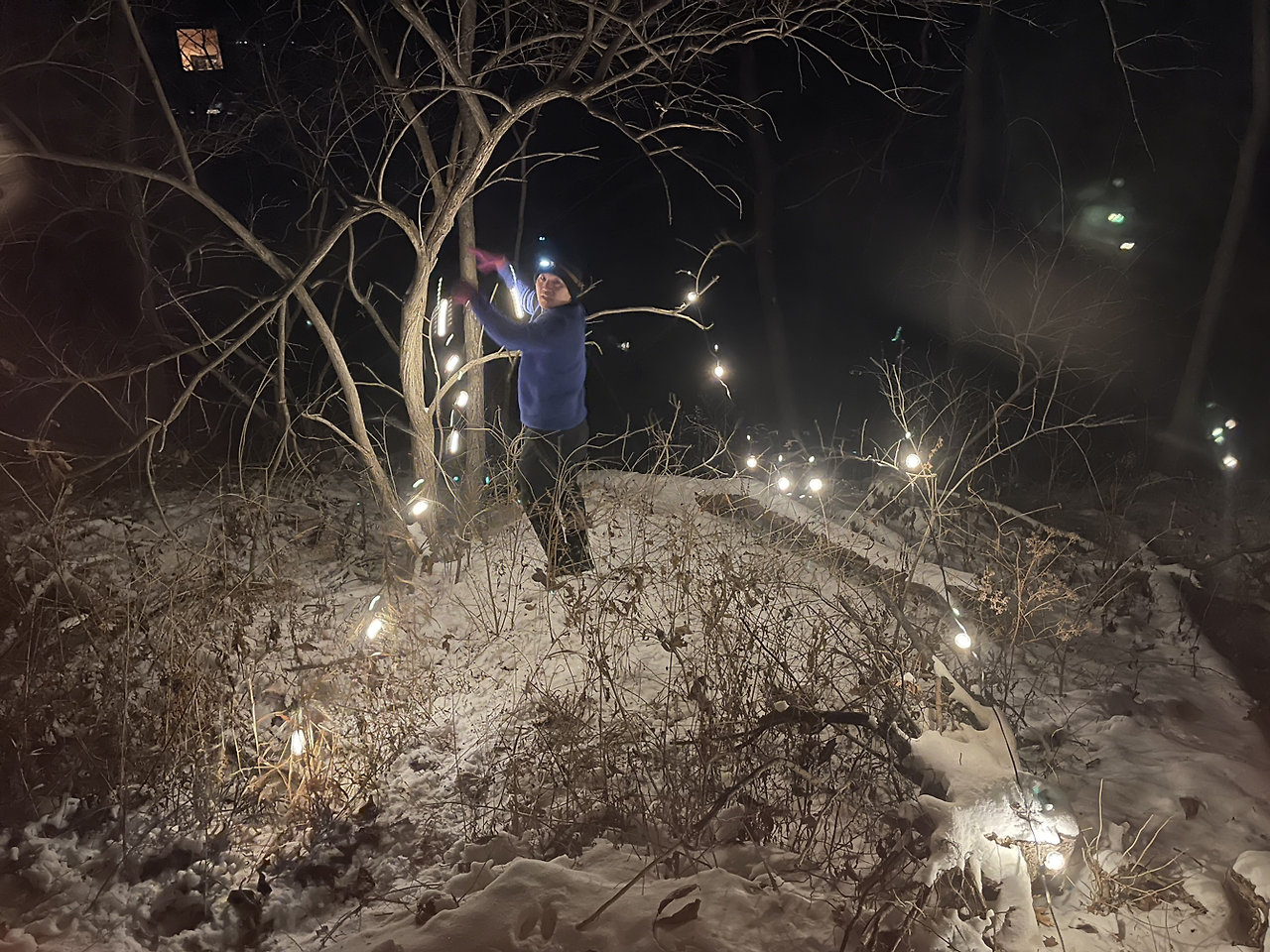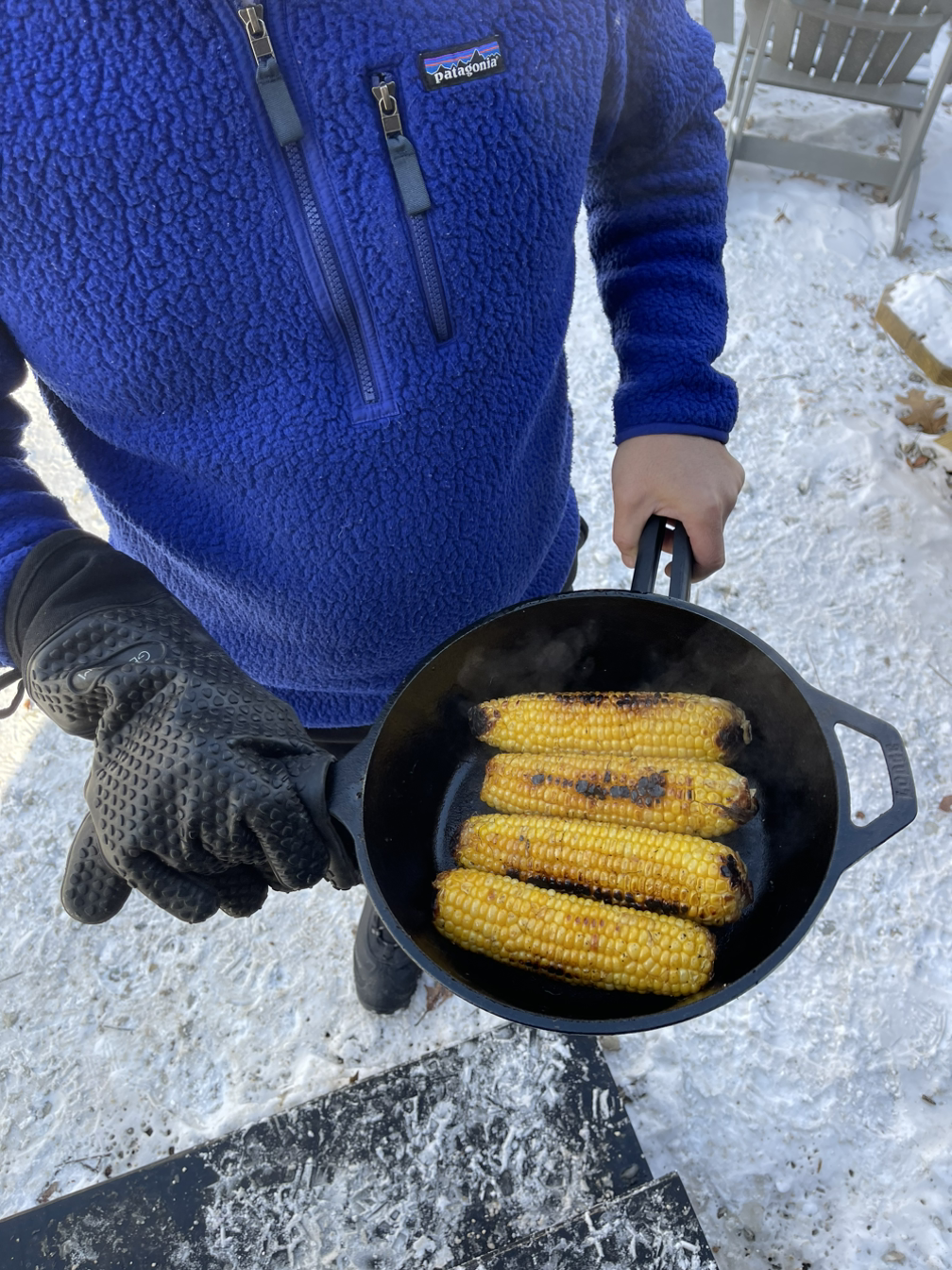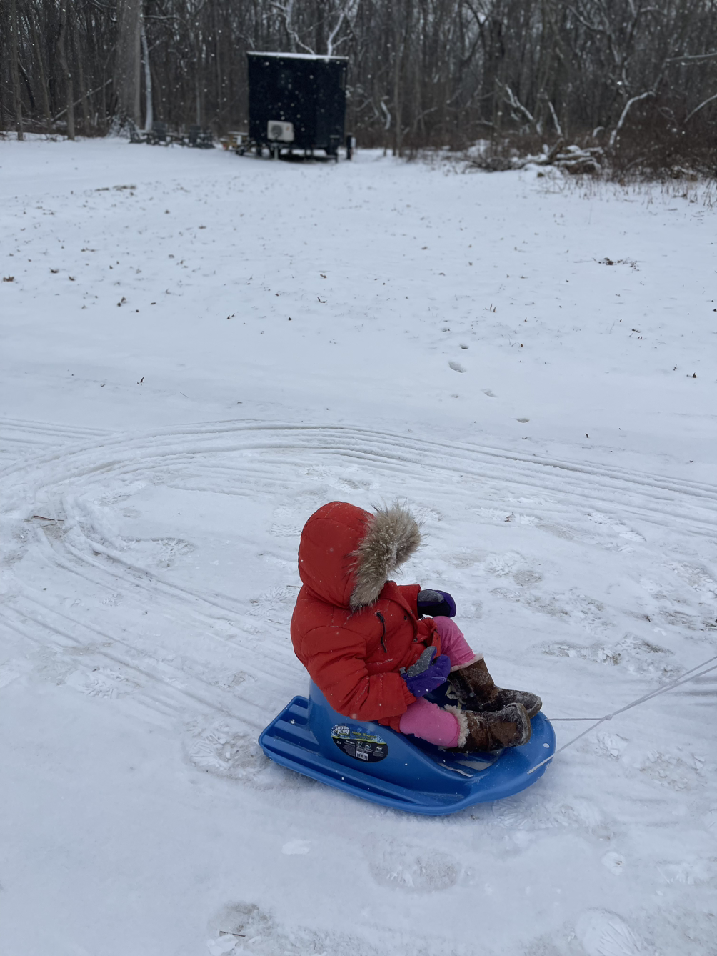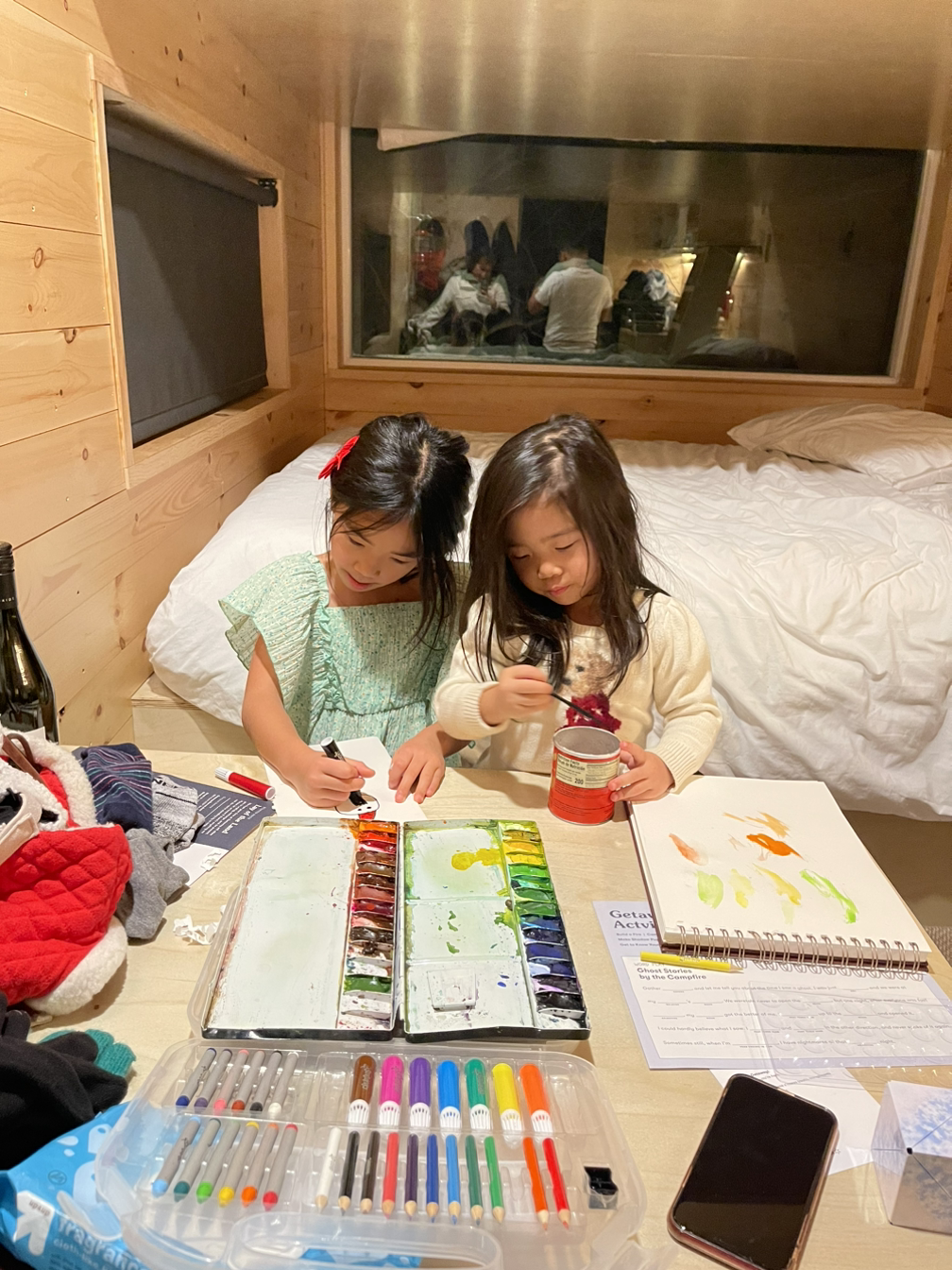 이미 여러 번 캠핑을 해본 적 있는 아이들은, 그 어떤 캠핑장보다 여기가 더 좋다고 했어요. 아무래도 따뜻한 방 침대에서 잘 수 있으니까요. 또 마침 저희가 갔던 크리스마스 연휴는 한국 뉴스에도 나올 만큼 미국에 엄청난 북극 추위가 찾아온 그다음 날이었는데, 정말 춥긴 했지만, 눈이 너무 예쁘게 펑펑 내려서 마치 스노볼 안에 들어온 것만 같았어요. 눈이 펑펑 오는 날, 크리스마스 캐럴 들으며 컨테이너 앞에 있는 캠프 파이어에서 불도 피우고, 마시멜로도 구워 먹으니, 어디 멀리 안 가도 이게 행복이구나, 생각이 들었죠.