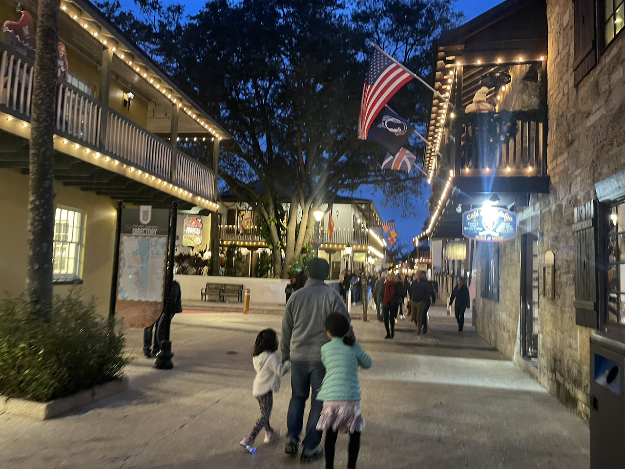 금방 어둑어둑해지고, 마을 이곳저곳에 크리스마스 조명이 켜졌다. 강변을 따라 낮게 지어진 하얀 건물들에는 마치 홀마크 크리스마스 영화 속으로 들어온 것처럼 화려한 조명 장식이 되어있었다. 나중에 찾아보니 St. Augustine은 미국에서도 손꼽히는 '크리스마스 마을'이라고 하는데 정말 그럴만했다. 이 외에도 요새, 박물관, 성당 등 내가 기대했던 것보다 볼거리가 많았다. 우린 더 어두워지기 전에 부지런히 올랜도로 2시간 다시 돌아가야 되기 때문에 아쉽게도 다 둘러보지 못하고 서둘러 나왔다. 올랜도가 주는 인공미에서 잠깐 탈출하고 싶을 때, 이곳 St. Augustine를 추천하고 싶다.