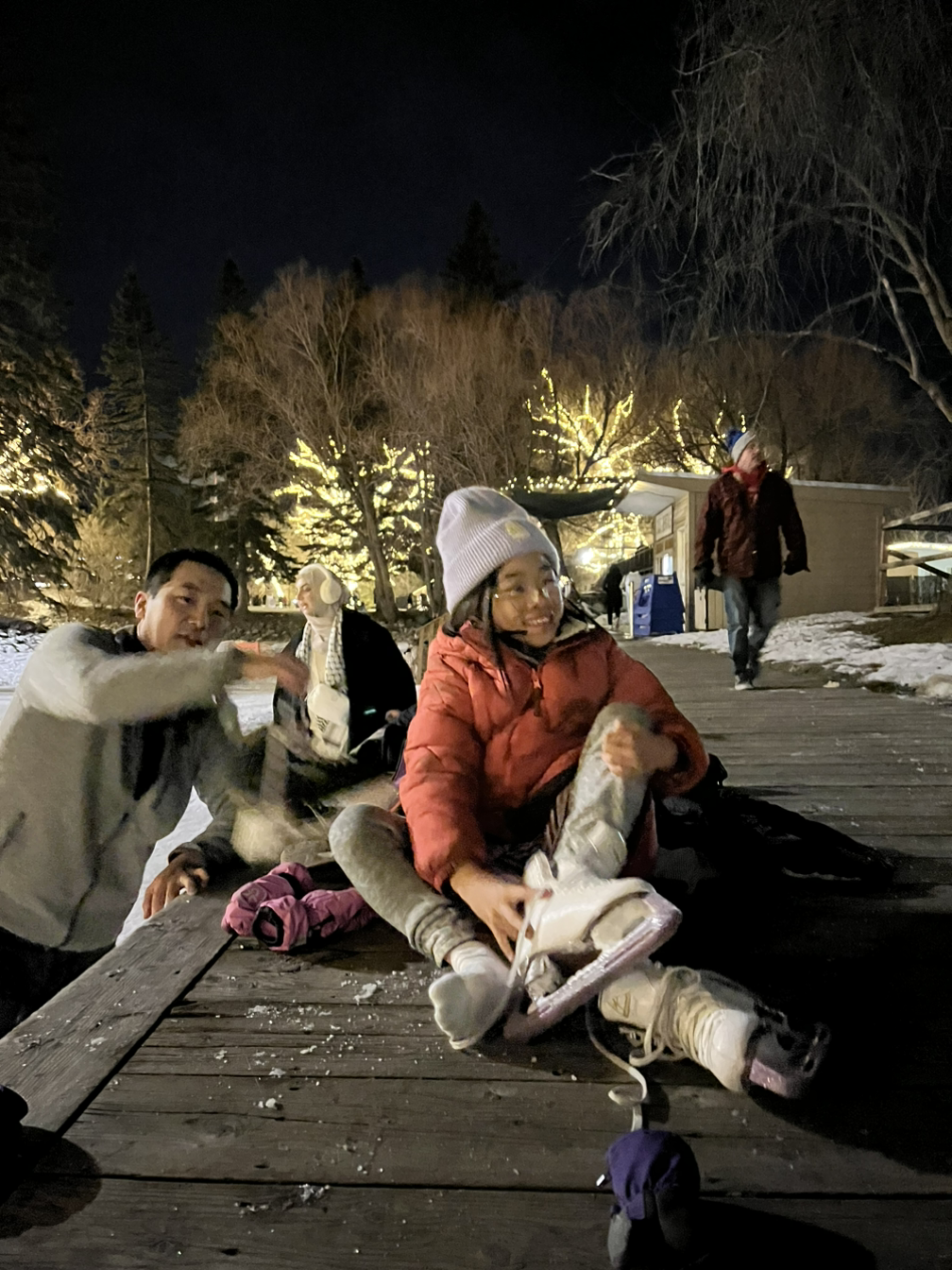 자주 타는 항공사가 아니라 짐을 많이 부칠 수 없는데도, 이 와중에 우리 가족 넷 스케이트를 다 챙겨 왔다. 하필 렌트한 차도 트렁크가 작아서 스키복에 스케이트까지 넣으려니 터져나갈 지경이었다. 그래도 캐나다는 스케이트만 들고 다니면 꽁꽁 언 호수 어디서든 탈 수 있다고 하면서 남편은 고집스레 그 무거운 스케이트를 이고 지고 왔다.