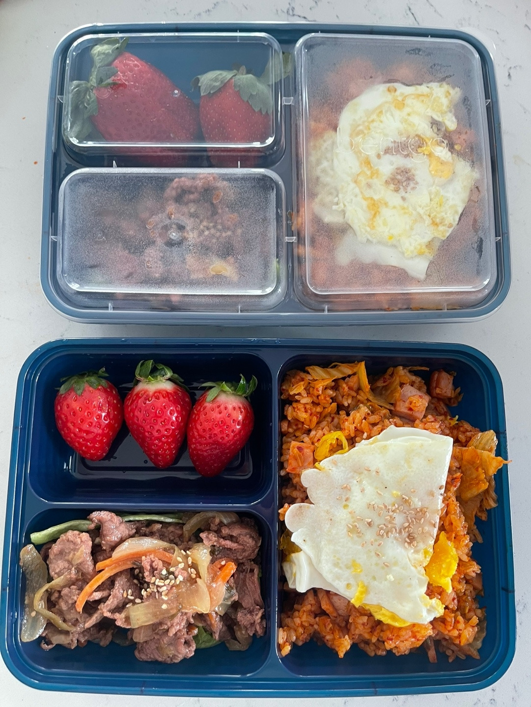 둘째는 며칠 전부터 학교에 ‘김치’ 3통을 가져가겠다고 하더라고요. 담임 선생님이 한국 음식을 너무 좋아하신다고 했다면서요. 아무리 생각해도 김치만 덜렁 가져가는 건 좀 이상해 보여서 고민을 하던 차, 발렌타인데이에 봉사도 가기로 했으니 이왕이면 예쁜 한국식 도시락을 준비해 선물해 드리면 좋겠다고 생각했어요. 고민 끝에, 크게 실패할 일 없고 발렌타인데이 분위기에도 어울리는 빨간 김치볶음밥과 달콤한 불고기를 만들기로 했습니다.