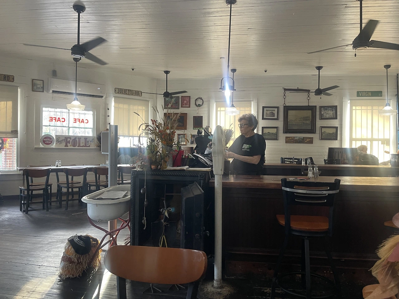 열심히 달려 마을 입구에 도착하니 마치 그 시절 영화 세트장 같은 그 모습 그대로였어요. 영화 속에 나왔던 기찻길도 그대로 있구요. 식당 앞 주차장에 차를 세우고 들어가려는데, 아뿔싸, 한 직원 아주머니가 문 밖으로 나오시더니 Open 싸인을 휙 돌려서 Closed로 바꾸시더라고요. 우리가 도착한 시간은 오후 4시, 영업이 끝나는 시간이래요. 아직 안에 손님들은 많이 있어서 혹시 우리가 아주 멀리서 왔는데 받아줄 수 없냐고 물어봤어요. 딱 봐도 이 동네 사람이 아니고 멀리서 온 사람들처럼 보이는 한국인 가족에게 이 무뚝뚝해보였던 아주머니는 친절을 베풀어주셨죠! 역시 Southern hospitality!