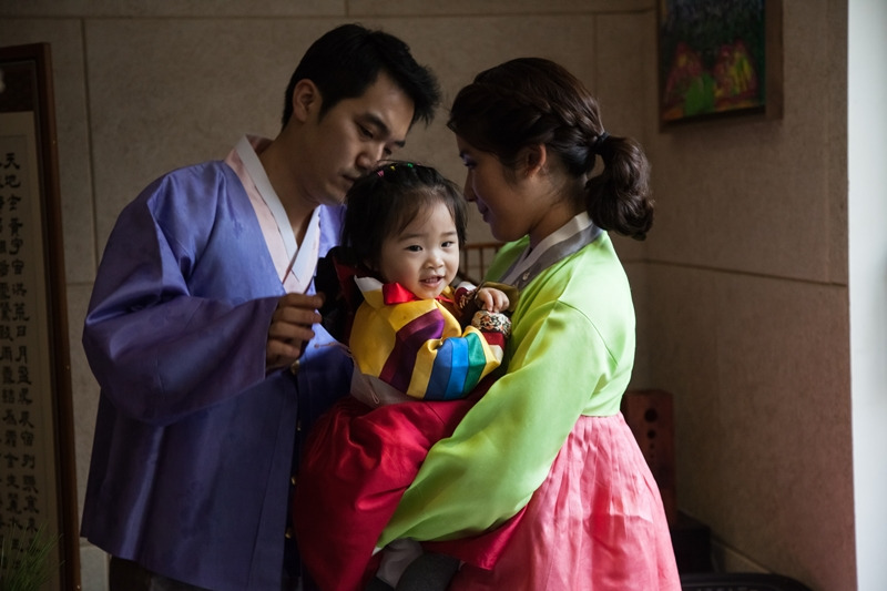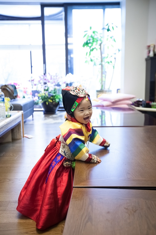 한복은 엄마들에게 인기 있다는 한복집에서 맞췄어요. 요즘은 파스텔이나 톤 다운된 색상도 많이 하는 것 같은데, 나중에 시간이 지나면 그래도 전통 한복 색이 가장 잘 어울릴 것 같아서요. 전 윤서가 올해랑 내년에 미국에 가서 핼러윈이나 특별한 날에 몇 번 더 입히고 싶어서 최대한 치수를 좀 크게 맞췄어요. 사실 한복은 결혼할 때도 그렇지만, 평소에 입을 일이 없으니까 그만한 투자를 하는 게 맞나 싶기도 하지요. 그래서 저도 처음에는 친구 추천으로 광장시장에 가서 전통 한복을 하나 사주었는데, 결국 계속 보다 보니 좋은 게 탐이 나서 새로 맞춰주었지요. 사실 엄마 욕심이지 무엇을 입혀도 아기들은 모두 천사같이 이쁘답니다.