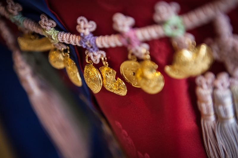 인터넷 서핑을 좋아하는 윤서 외할머니가 우연히 발견하고 선물해주신 곳입니다. 파스텔톤으로 손염색한 매듭은 이 자체로도 멋진 작품이고, 또 한복에도 잘 어울립니다. 돌띠의 경우는 돌잔치 이후에는 사용하지 않으므로 작은 액자를 만들어 아기방에 걸어주어도 좋은 장식품이 되어줍니다.