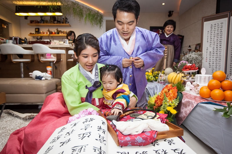 전통 한복을 입히고 싶어서 찾게된 곳입니다. 어른 한복 맞추는 것과 동일하게 예약을 잡아 피팅을 하게 되니 꼭 전화 예약을 하고 가야 합니다. 아이 한복을 주로 하는 곳이라 아기에게 편한 한복을 잘 만들고, 소재도 좋습니다. 윤서도 한복이 편하고 마음에 들었는지 돌잔치 이후로도 설날이나 추석, 미국에서 할로윈 때도 수시로 입혀달라고 해서 입히고 있어요. 아기는 돌 때 이후 두 돌까지는 빠른 속도로 성장하기 때문에 저처럼 좀 오래 입히고 싶은 분들은 치수를 잴 때 아예 품을 좀 넉넉하게 해달라고 요청하시면 됩니다.