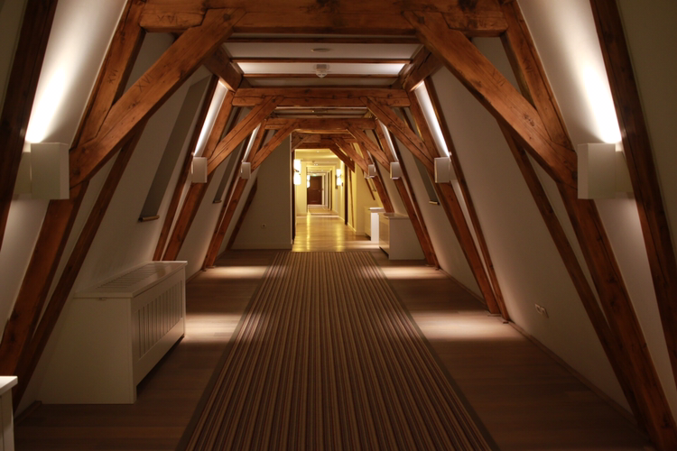 이 호텔은 방이 101개뿐이에요. 과거에 수도원으로 쓰인 것을 그 모양 그대로 개조한 것이기 때문에 신비로운 느낌을 줍니다. 일반 방은 평수도사들이 사용했을 것처럼 목조로 된 하얗고 소박한 방에 성당의 종소리가 잘 들릴 수 있도록 이쁜 창문이 나있어요. 스위트룸도 종류가 여러 개인데, 타워 스위트의 경우에 말 그대로 수도원 3층 탑 전체를 방으로 만들어서 전망이 아주 잘 보이게 만든 곳이고, 또 프레스코(Fresco) 스위트룸은 19세기 프레스코화가 방 천제에 꾸며져서 독특한 분위기를 뿜어내지요.