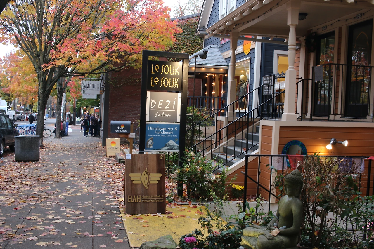 저희는 포틀랜드의 가로수길이라는 별명을 가진 23번가를 찾아갔습니다. 이곳에서라면 분명 제가 찾고 있는 킨포크를 발견할 수 있을 것이란 확신이 들었습니다. 하지만, 막상 가보니 잡지에서 본 것처럼 거리에 천편일률적인 미국 간판 브랜드 대신 로컬 디자이너들의 샵들만 있는 건 아니었습니다. 전 손으로 직접 깎은 나무로 만드는 공방이나 이 지역 출신의 화가의 아뜰리에, 혹은 아메리칸 퀼트로 만든 작품들을 파는 상점을 상상했거든요. 심지어 소비세도 0%인 보기 드문 도시라, 뭔가 마음에 들어오는 게 있으면 망설이지 말고 사야지,라고 생각했기 때문에 아쉬움이 더 컸습니다. 아름다운 낙엽진 그곳은 충분히 아름다웠지만, 그 거리에는 분명 제가 찾는 Kinfolk는 없었어요.