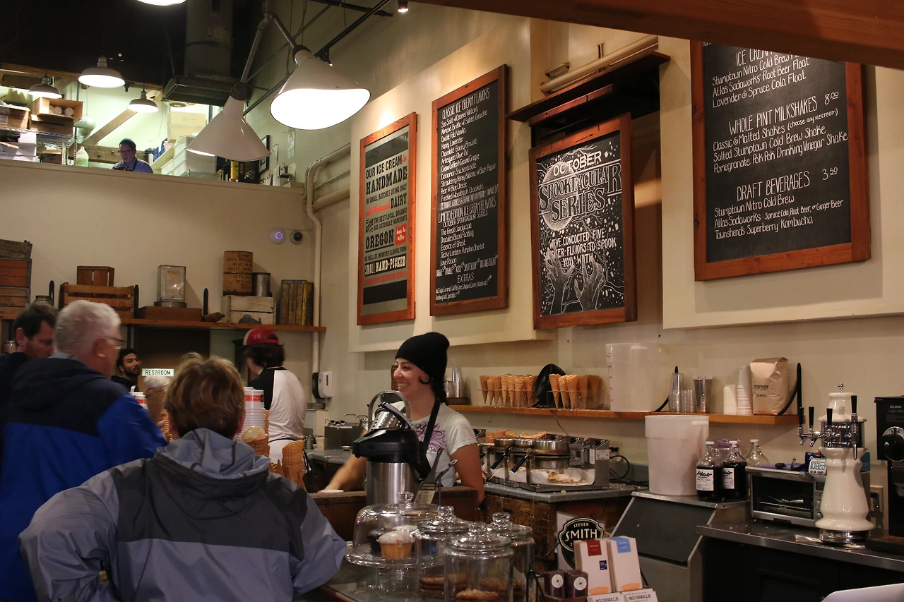그 앞에 서니 왜 이렇게 줄이 안 줄어드는지 깨달았습니다. 바로 한 사람당 원하는 만큼의 아이스크림을 종류별로 맛볼 수 있게 한 것이지요. 손님이 원하는 취향을 말하면 점원은 몇 가지 맛의 아이스크림을 떠 오고, 만약 다 맛없다고 하면 또다시 새로운 몇 가지 맛을 소개해주고 있었습니다. 또 각각의 아이스크림 재료가 어디에서 왔고, 얼마나 신선 한 지에 대해서 설명하면서 말이죠. 아이스크림 하나 먹으려고 그 긴 줄을 서는 손님이나, 손님이 원하는 맛을 찾아주겠다고 마치 비싼 와인 파는 소믈리에 같은 점원이나, 제 눈엔 이게 바로 포틀랜드였습니다. (아, 그리고 제가 고른 보랏빛 라벤더 아이스크림은 맛도, 향도 끝내주게 좋았습니다.)