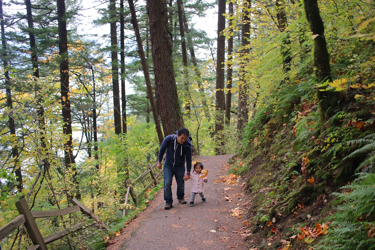 마운트 후드를 향해 차를 타고 한참을 달리자 우리는 그제야 우리가 오레곤 주의 품 속에 있다는 걸 느낄 수 있었습니다. 중간중간 차에서 내려 구경을 하기도 하고, 또 그림 같은 멀트노마 폭포를 위에서 보고 싶어 두 시간 산행을 하기도 했지요. 윤서는 떨어진 단풍잎을 주워가며 신나게 산을 따라 올랐습니다. 사실 마운트 후드에 도착했을 때는 어둑어둑 저녁이 다 된 시간이고, 또 산에는 저희 뿐 지나가는 차도 없었습니다. 때맞춰 비바람이 불기 시작해 저흰 제대로 보지 못하고 서둘러 내려와야 했습니다. 그래도 우리는 이 마운트 후드를 찾아오는 길 따라 오레곤주의 가을을 제대로 만끽할 수 있었지요.