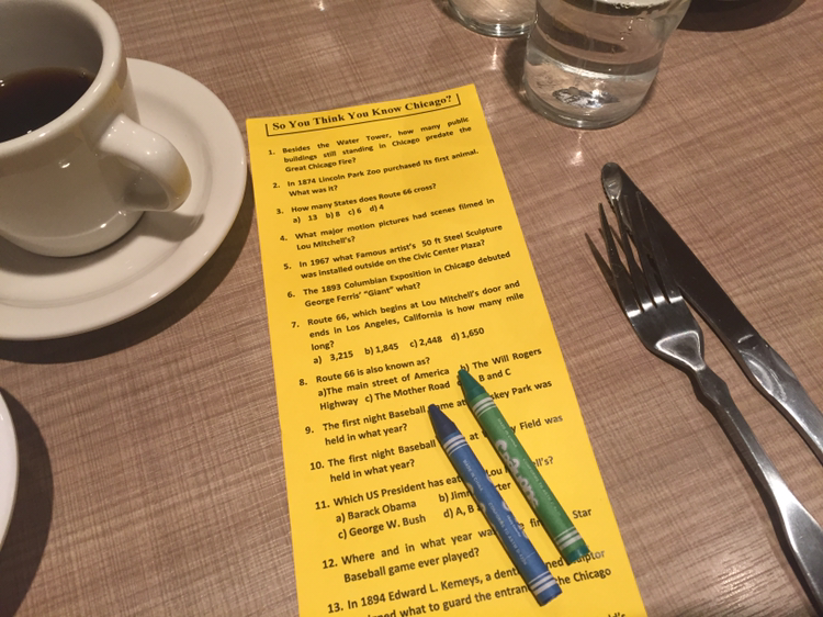 시카고에 여행을 왔다면 한 번쯤 가보길 추천합니다. 느끼한 음식을 별로 좋아하지 않는 저도 대부분의 음식을 맛있게 먹고 나왔습니다. 중간중간 서비스로 오렌지도 주고, 또 식후에는 진한 바닐라 아이스크림도 주는데 참 재밌는 풍경입니다. 주말에 대기 시간은 좀 길 수 있지만, 평일에는 오전 5시 30분(주말은 7시)에 문을 열기 때문에 부지런하면 줄을 안 서고 이 빈티지하고 친절한 다이너에서 맛있는 아침을 맛볼 수 있습니다. 아이들을 위한 하이체어, 색연필, 어린이 전용 메뉴 등이 있어 아이들을 동반해도 즐거운 식사를 할 수 있습니다.