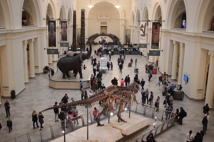 필드뮤지엄은 자연사 박물관이에요. 엄청나게 방대한 종류의 동물들의 표본을 실감 나게 볼 수 있고, 그 외에 인류학, 식물학, 동물학, 지질학에 대한 연구 결과를 아이들도 알기 쉽게 전시해놓았어요. 또 앞에 버튼을 누르면 그 동물의 소리를 실제로 들을 수 있게 해서 아이들이 더 흥미를 느끼기도 했지요. 학 코너에는 동양의 학 문화에 대해서 소개를 하기도 했는데 우리나라 500원 동전이 전시되어 있었습니다.