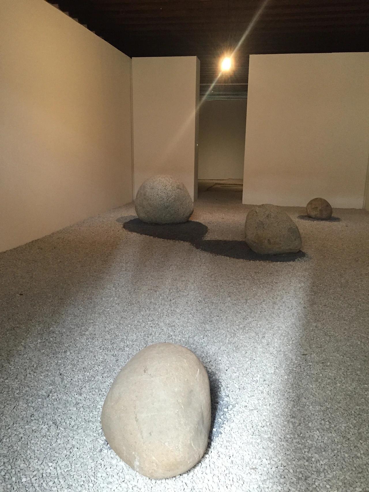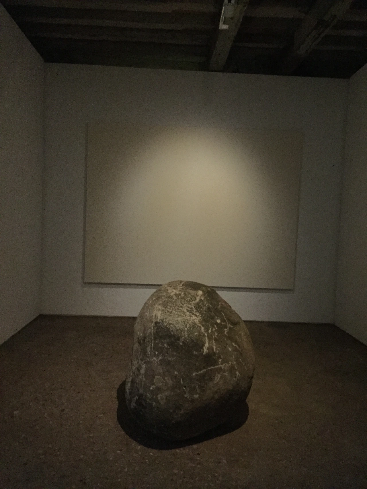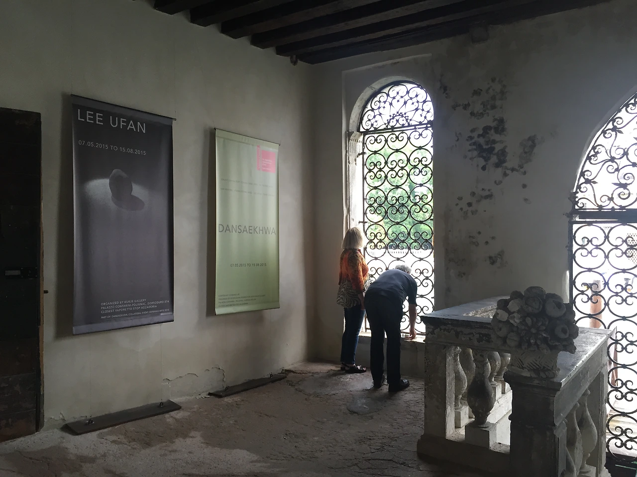 이우환 작가하면 또 잊지 못할 하나의 장소가 있다. 바로 2015년 여름, 출산 후 몸조리를 마치고 남편과 다녀왔던 베니스 비엔날레. 이번에 국제 갤러리가 한국의 단색화를 베니스에서 선보였는데, 거기에 이우환 작가의 작품이 있었다. 창 밖으로는 바다 위에 둥둥 떠있는 곤돌라가 보이는 그 이국적인 장소에서 만난 돌덩이들은 부산에 모여있는 순박한 돌덩이들보다는 조금 더 긴장한 듯 보였다. '외국 손님들도 왔는데 더 잘 보여야지'라고 제 자리를 지키고 있는 듯 느껴지기도 했다. 난 베니스에서 아는 한국 사람을 만난 듯 반가웠다. 많이.